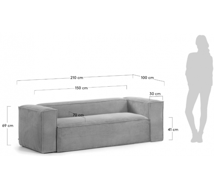 Sofa til 2 personer, udført i et moderne skandinavisk design fra LaForma. Sofaen er fremstillet i grå ripcurl velour og måler 210 cm i bredden og 100 cm i dybden.
