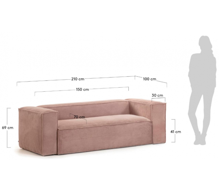 Sofa til 2 personer, udført i et moderne skandinavisk design fra LaForma. Sofaen er fremstillet i pink ripcurl velour og måler 210 cm i bredden og 100 cm i dybden.