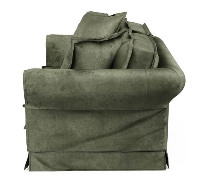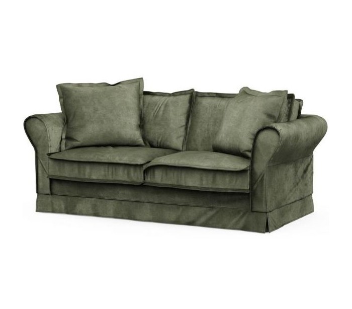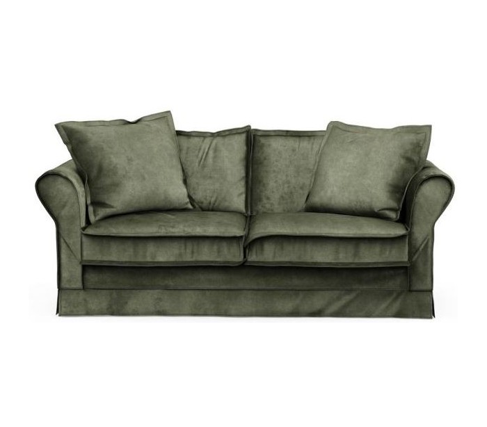 Riviera Maison 2,5 personers i et luksuriøst design af efeu grøn velour. Sofaen måler 79 cm i højden over ryggen og 181 cm i bredden.