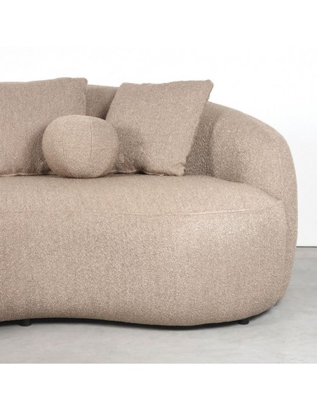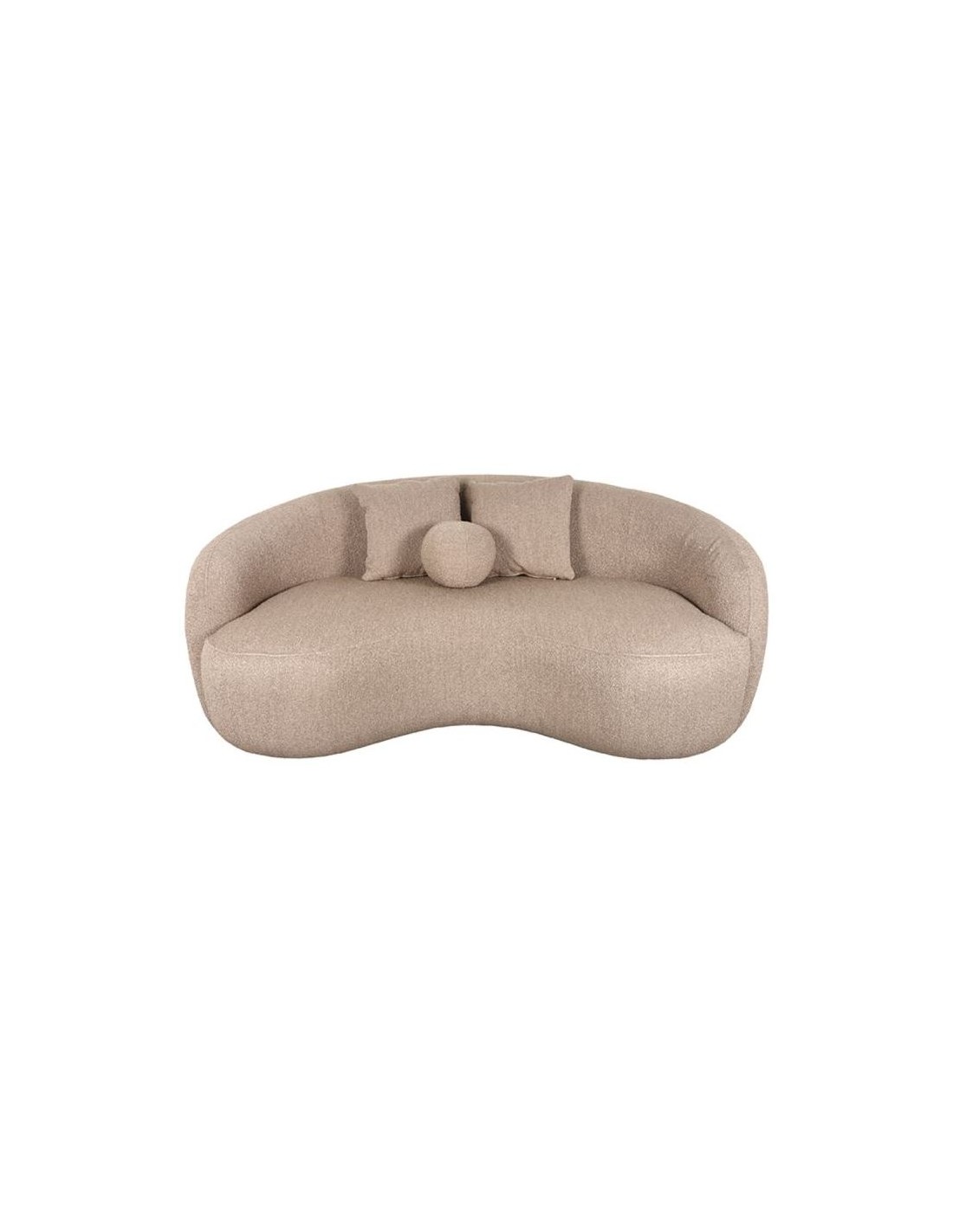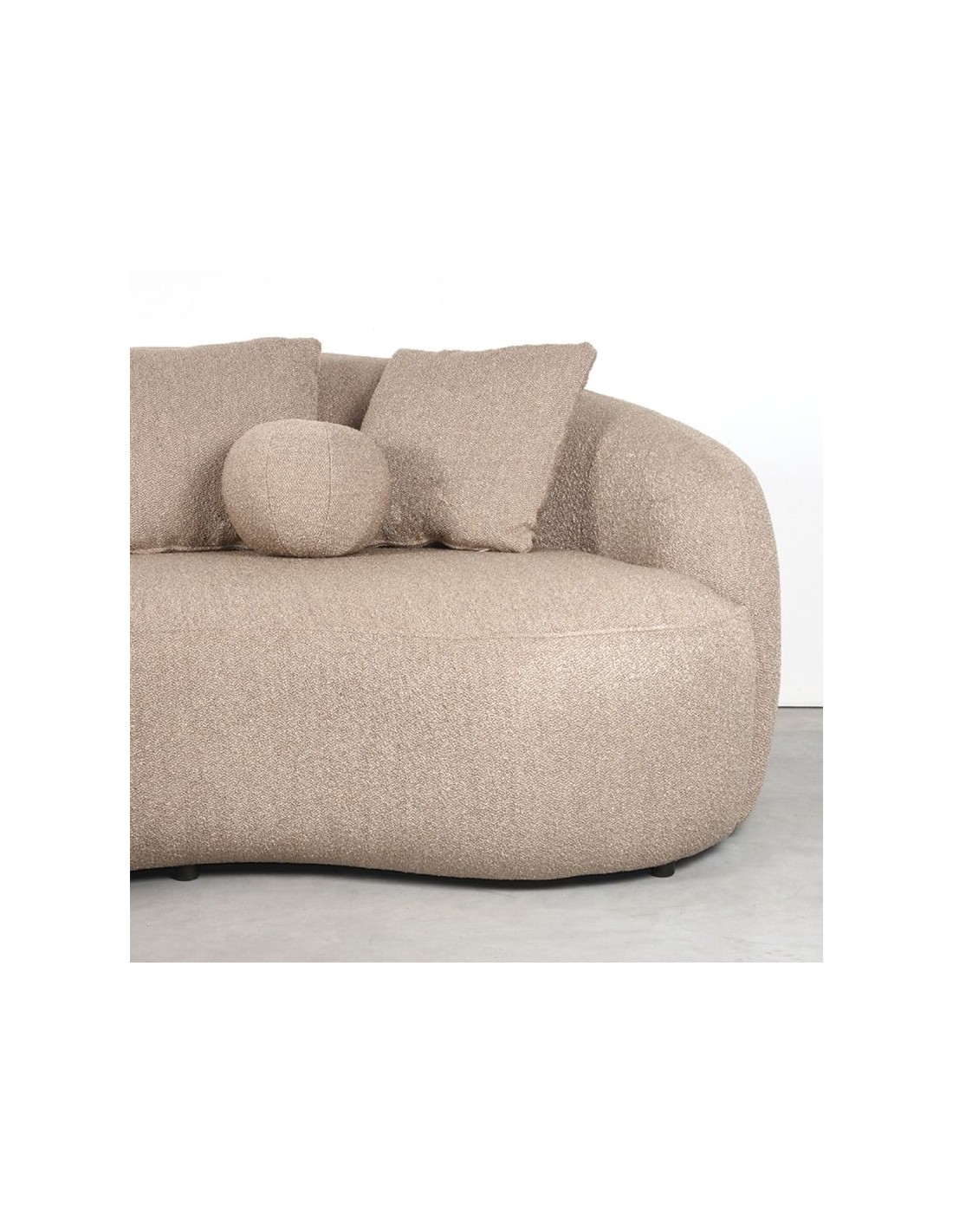 Nesso 2-personers sofa, udført i et moderne og lækkert design af lergrå bouclé tekstil. Sofaen måler 190 cm i bredden og 120 cm i dybden (sofaen buer lidt) og er polstret med højkvalitets skum og fjedre. En lækker blød sofa der virkelig kan slænges på. Der medfølger 2 firkantede puder 40 x 40 cm i samme tekstil samt 1 rund pude.