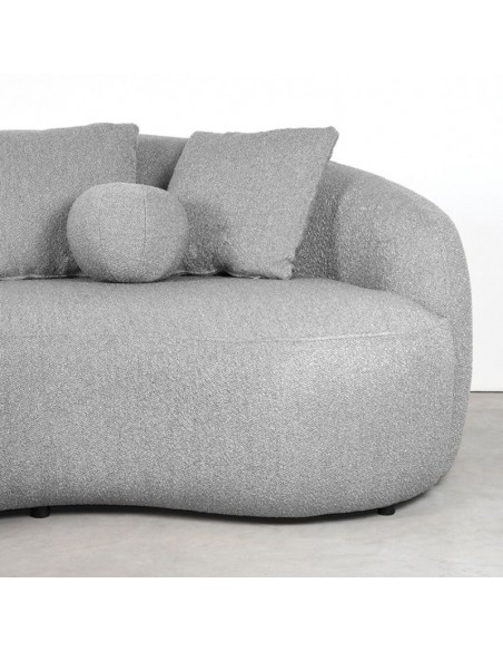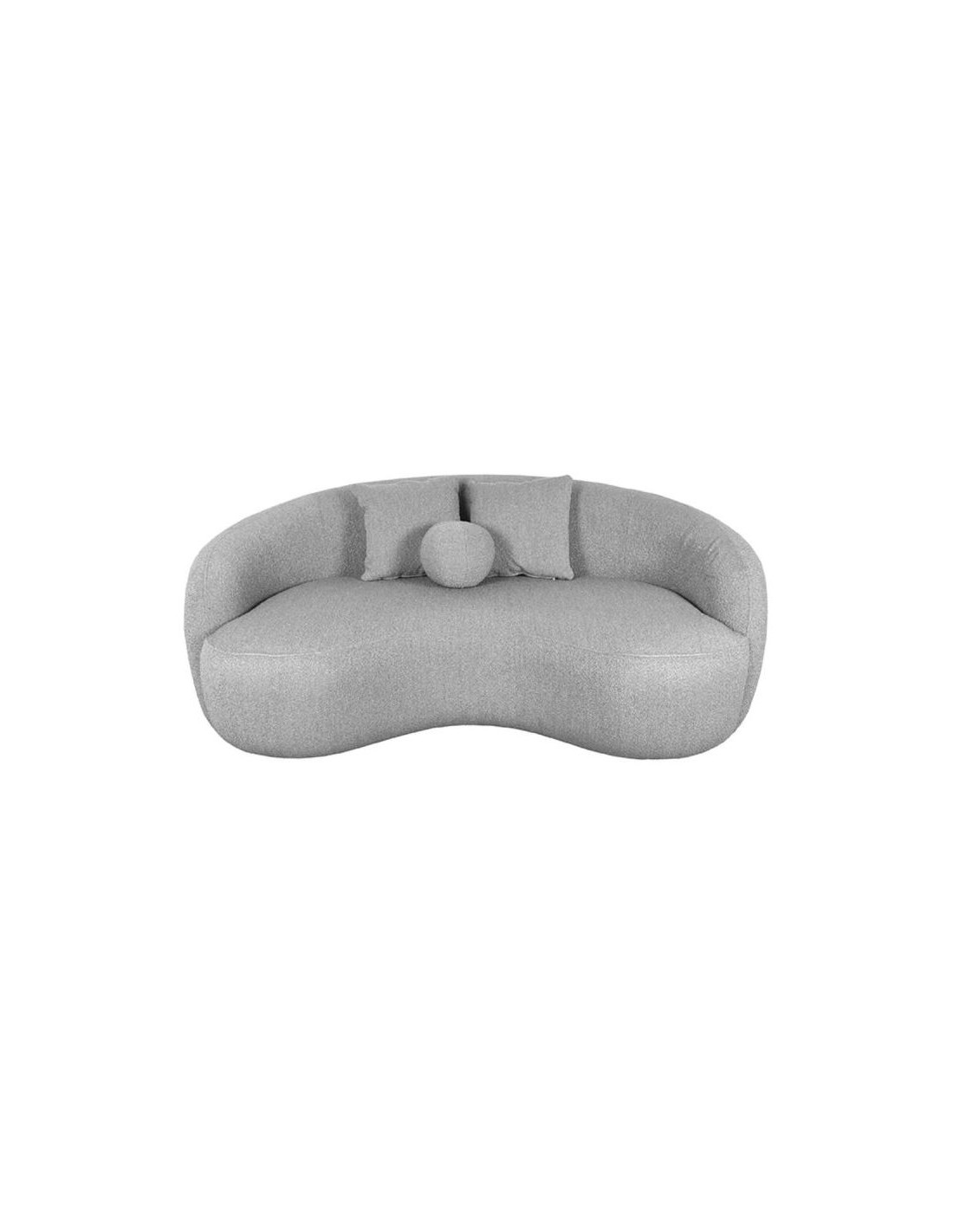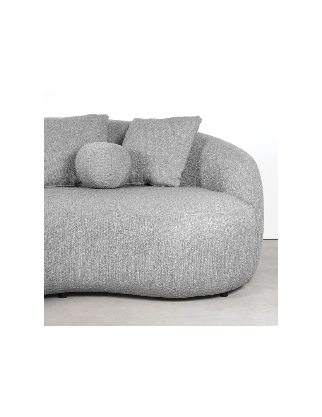 Nesso 2-personers sofa, udført i et moderne og lækkert design af grå bouclé tekstil. Sofaen måler 190 cm i bredden og 120 cm i dybden (sofaen buer lidt) og er polstret med højkvalitets skum og fjedre. En lækker blød sofa der virkelig kan slænges på. Der medfølger 2 firkantede puder 40 x 40 cm i samme tekstil samt 1 rund pude.