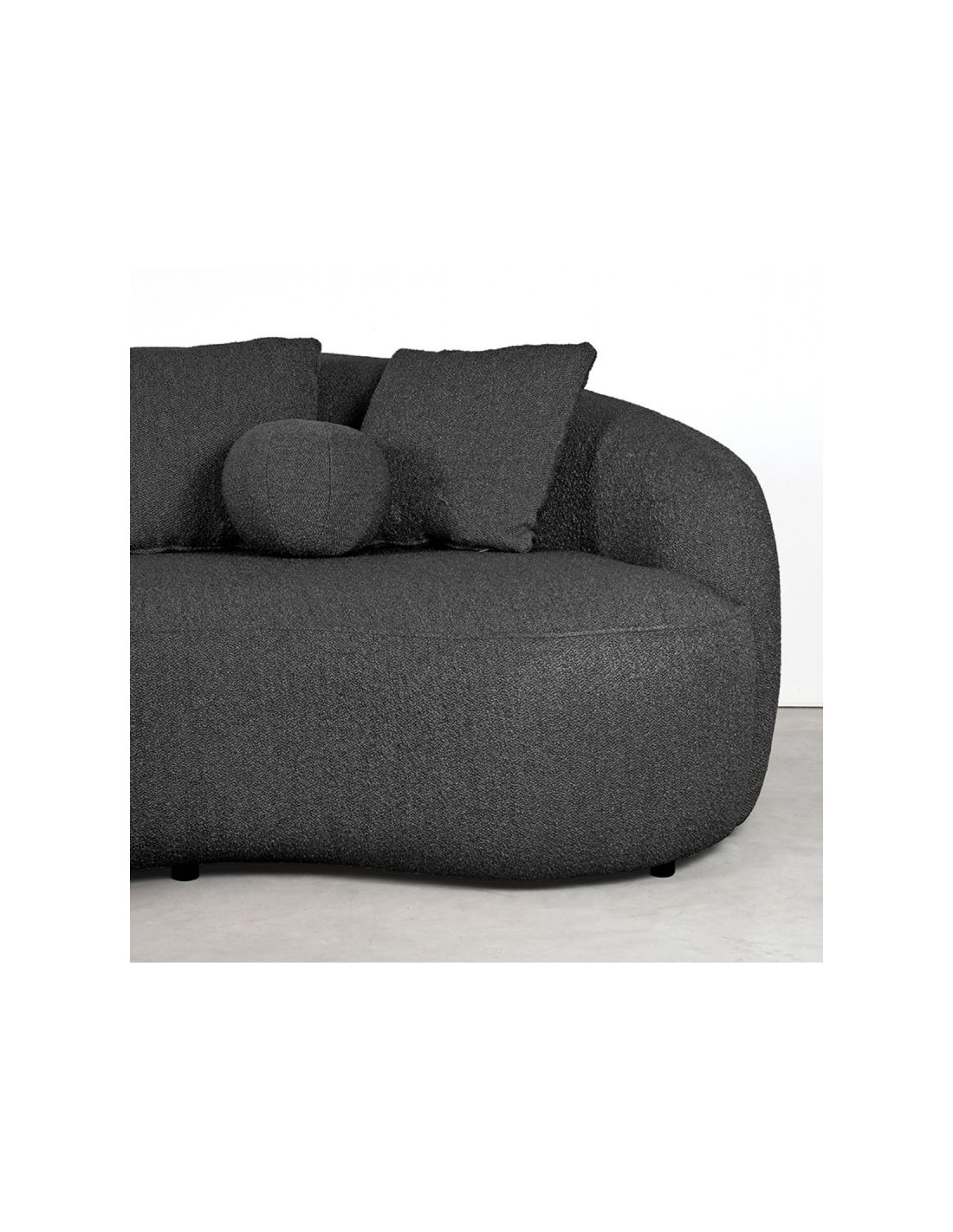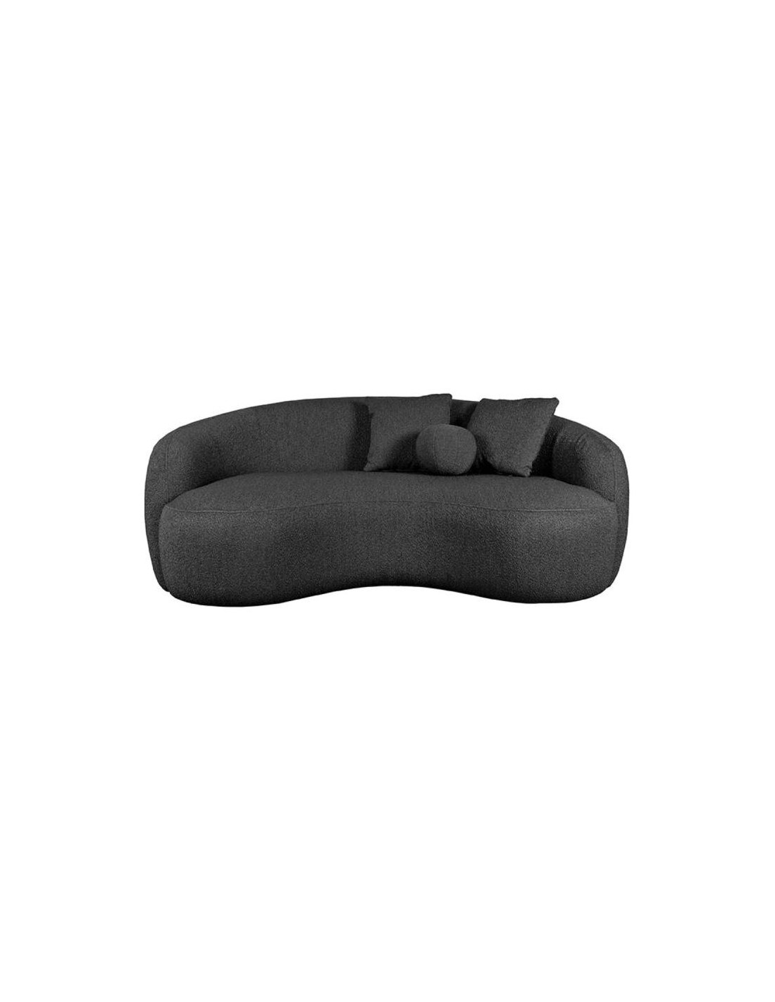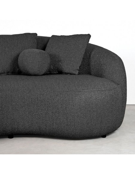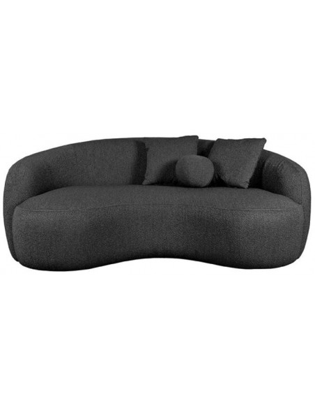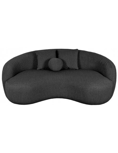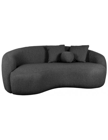 Nesso 2-personers sofa, udført i et moderne og lækkert design af antracit bouclé tekstil. Sofaen måler 190 cm i bredden og 120 cm i dybden (sofaen buer lidt) og er polstret med højkvalitets skum og fjedre. En lækker blød sofa der virkelig kan slænges på. Der medfølger 2 firkantede puder 40 x 40 cm i samme tekstil samt 1 rund pude.