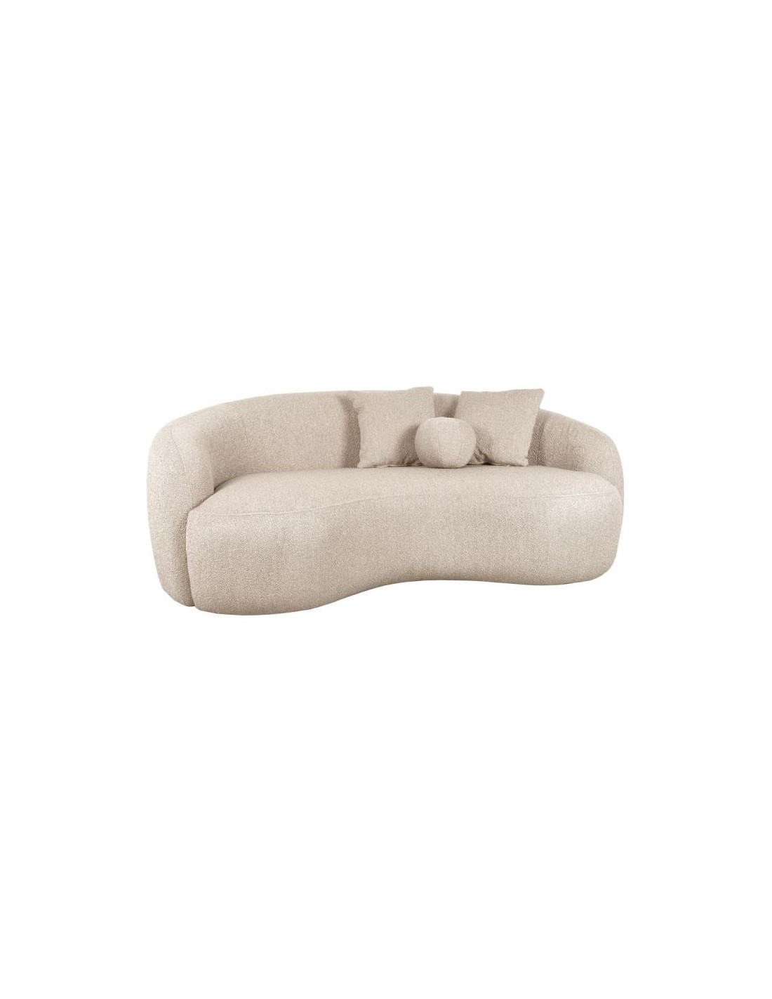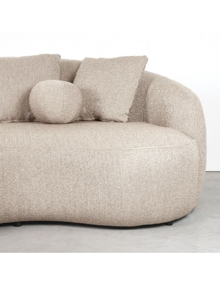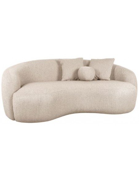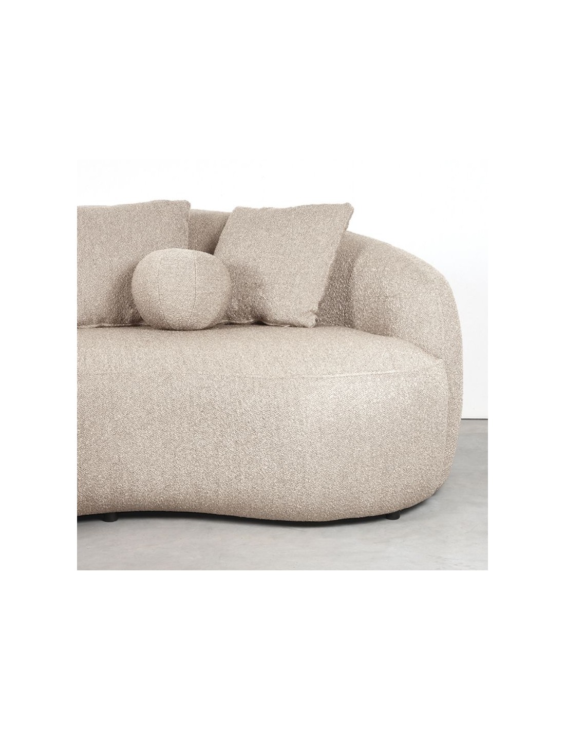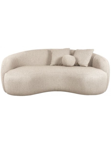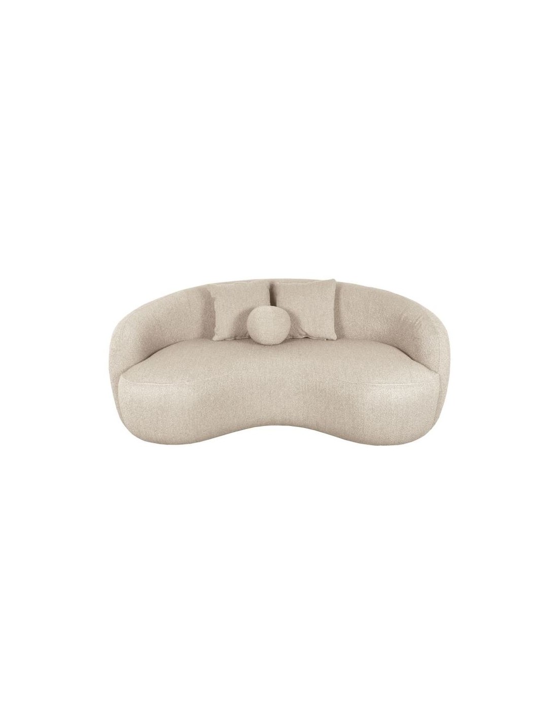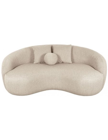 Nesso 2-personers sofa, udført i et moderne og lækkert design af beige bouclé tekstil. Sofaen måler 190 cm i bredden og 120 cm i dybden (sofaen buer lidt) og er polstret med højkvalitets skum og fjedre. En lækker blød sofa der virkelig kan slænges på. Der medfølger 2 firkantede puder 40 x 40 cm i samme tekstil samt 1 rund pude.