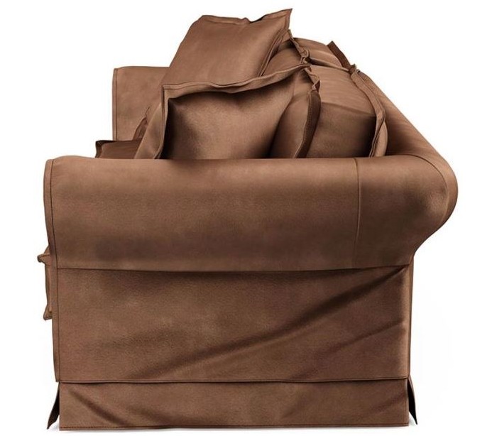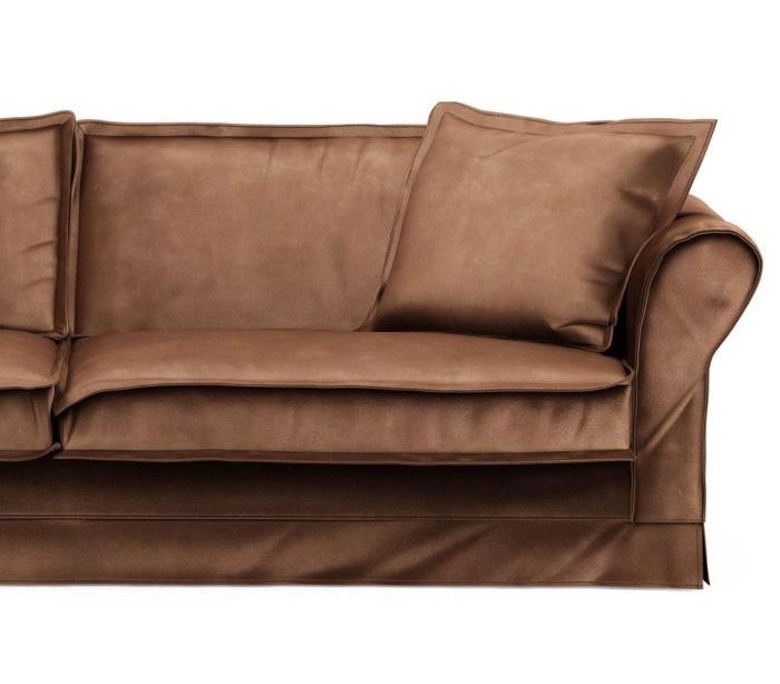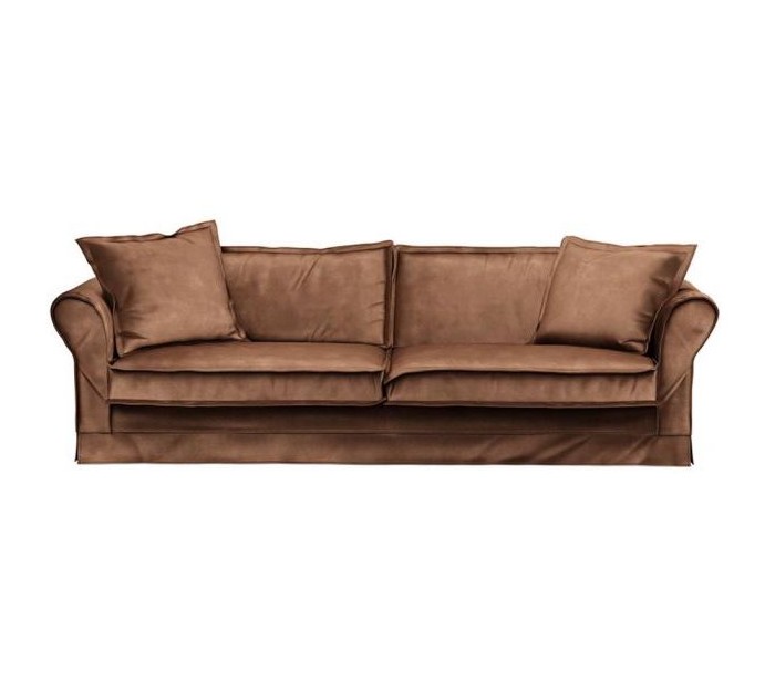 Riviera Maison 3,5 personers i et luksuriøst design af chokoladefarvet velour. Sofaen måler 79 cm i højden over ryggen og 255 cm i bredden.
