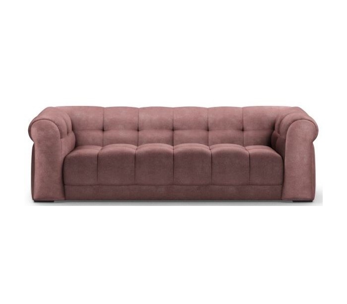 Riviera Maison 3,5 personers sofa i et luksuriøst design af støvet pink velour og ben i sortlakeret træ. Sofaen måler 68 cm i højden over ryggen og 235 cm i bredden.