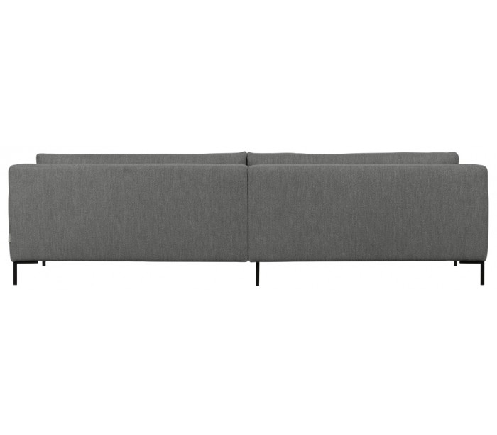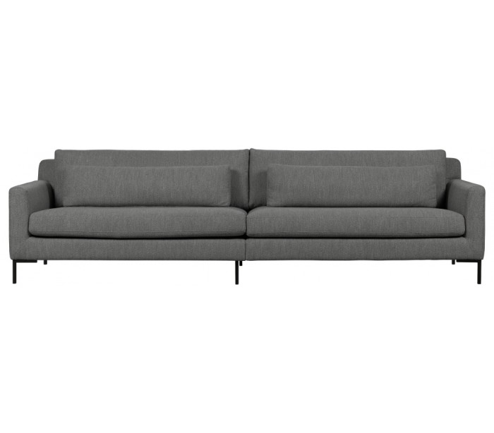 Sofa til 4 personer, udført i et design af stålgrå polyester og med ben i sortlakeret metal. Sofaen måler 282 x 99 cm i bredde og dybde. Sofaen er polstret med højkvalitets skum og nosag fjedre.
