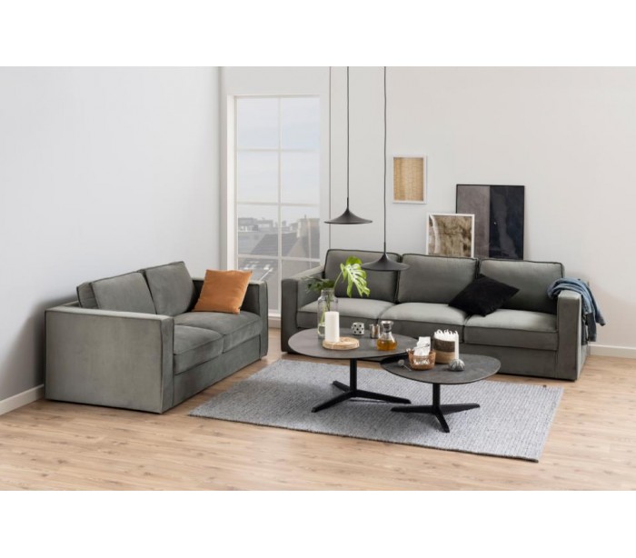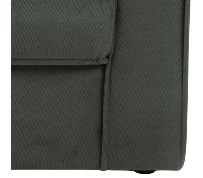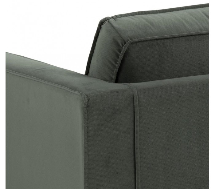 Sofa til 3 personer, udført i et moderne design af grågrøn polyester og med ben i sort kunststof. Sofaen måler 249 cm i bredden og 98 cm i dybden.
