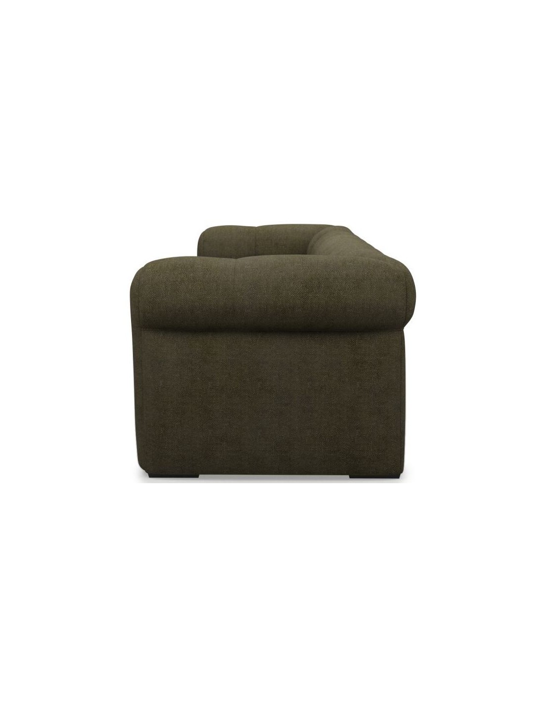 Riviera Maison 3,5 personers sofa i et luksuriøst design af dyb grøn polyester og ben i sortlakeret træ. Sofaen måler 68 cm i højden over ryggen og 235 cm i bredden.