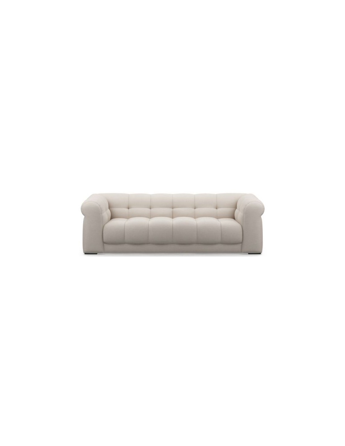 Riviera Maison 3,5 personers sofa i et luksuriøst design af naturfarvet polyester og ben i sortlakeret træ. Sofaen måler 68 cm i højden over ryggen og 235 cm i bredden.