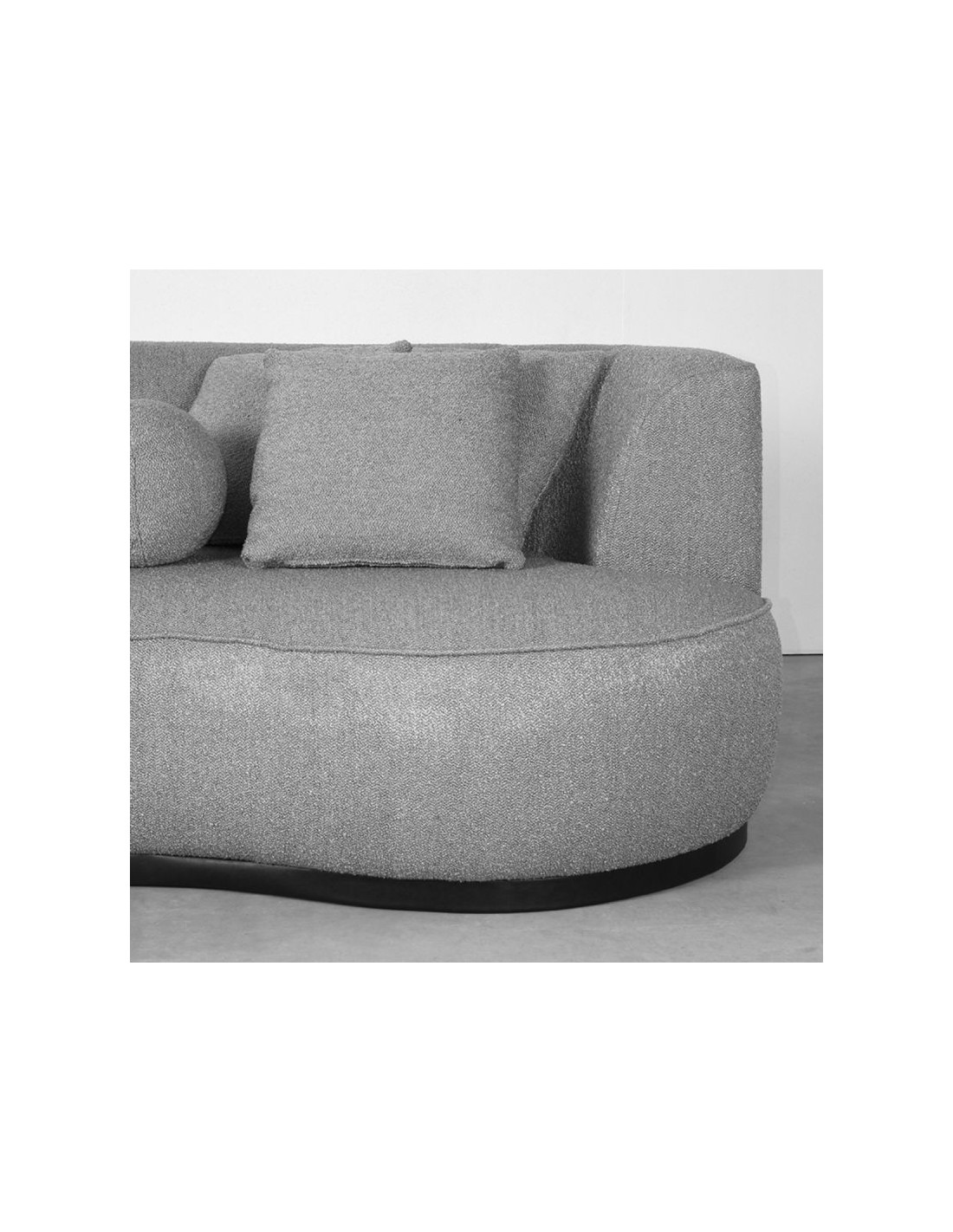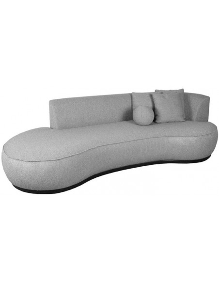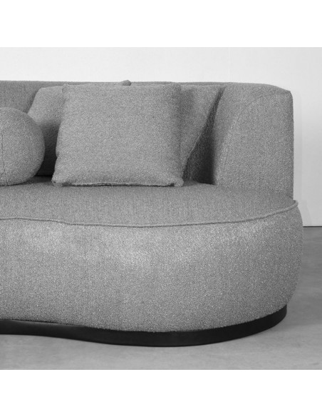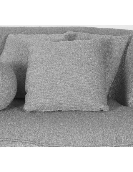 Salo 3-personers sofa, udført i et moderne og lækkert design af grå bouclé tekstil. Sofaen måler 270 cm i bredden og 102 cm i dybden (sofaen buer lidt) og er polstret med højkvalitets skum og fjedre. En lækker blød sofa der virkelig kan slænges på. Sofaens bund er i sortlakeret træ. Der medfølger 3 firkantede puder 40 x 40 cm i samme tekstil samt 1 rund pude.