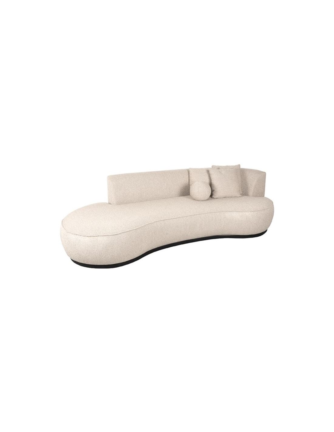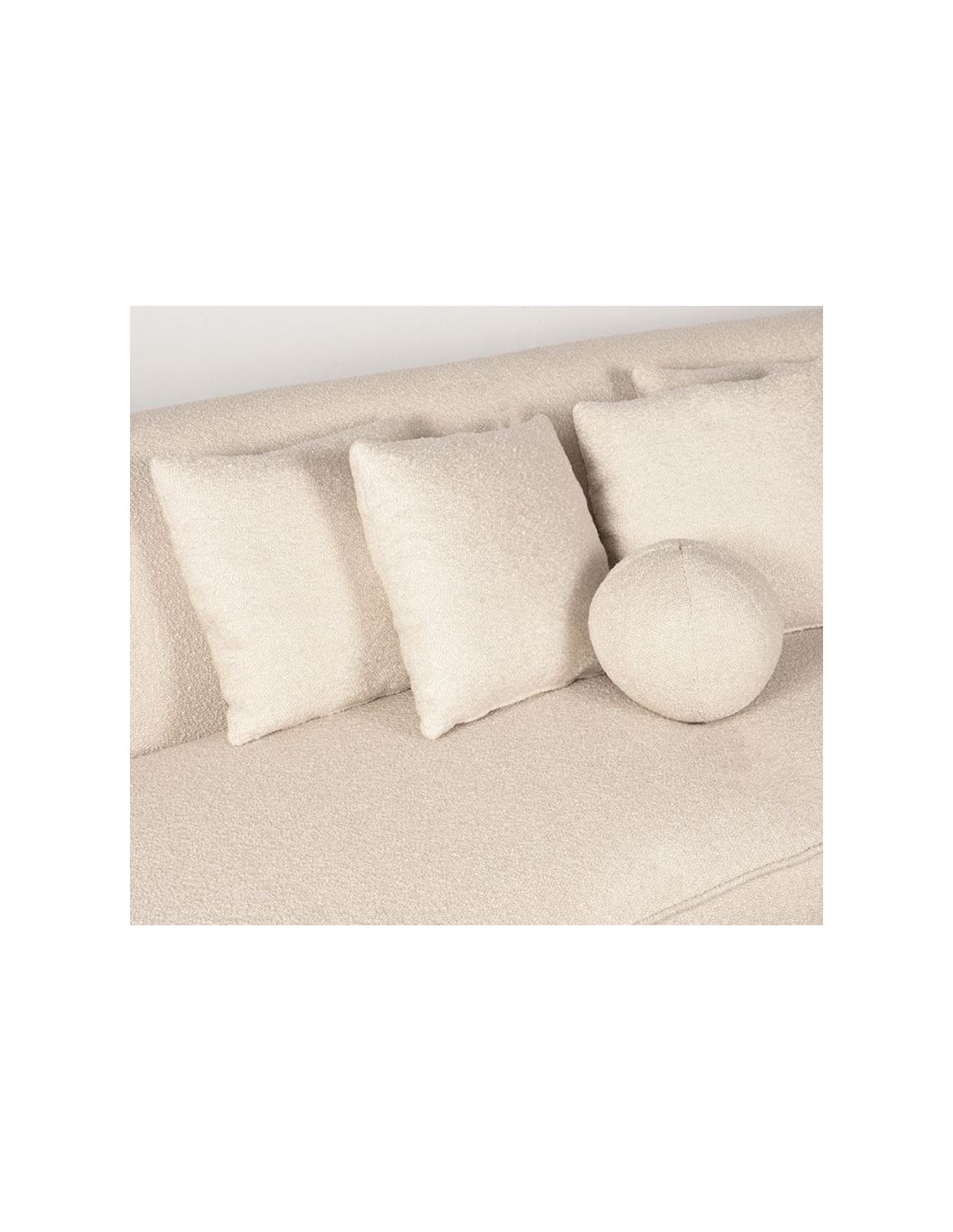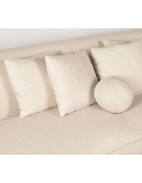 Salo 3-personers sofa, udført i et moderne og lækkert design af beige bouclé tekstil. Sofaen måler 270 cm i bredden og 102 cm i dybden (sofaen buer lidt) og er polstret med højkvalitets skum og fjedre. En lækker blød sofa der virkelig kan slænges på. Sofaens bund er i sortlakeret træ. Der medfølger 3 firkantede puder 40 x 40 cm i samme tekstil samt 1 rund pude.