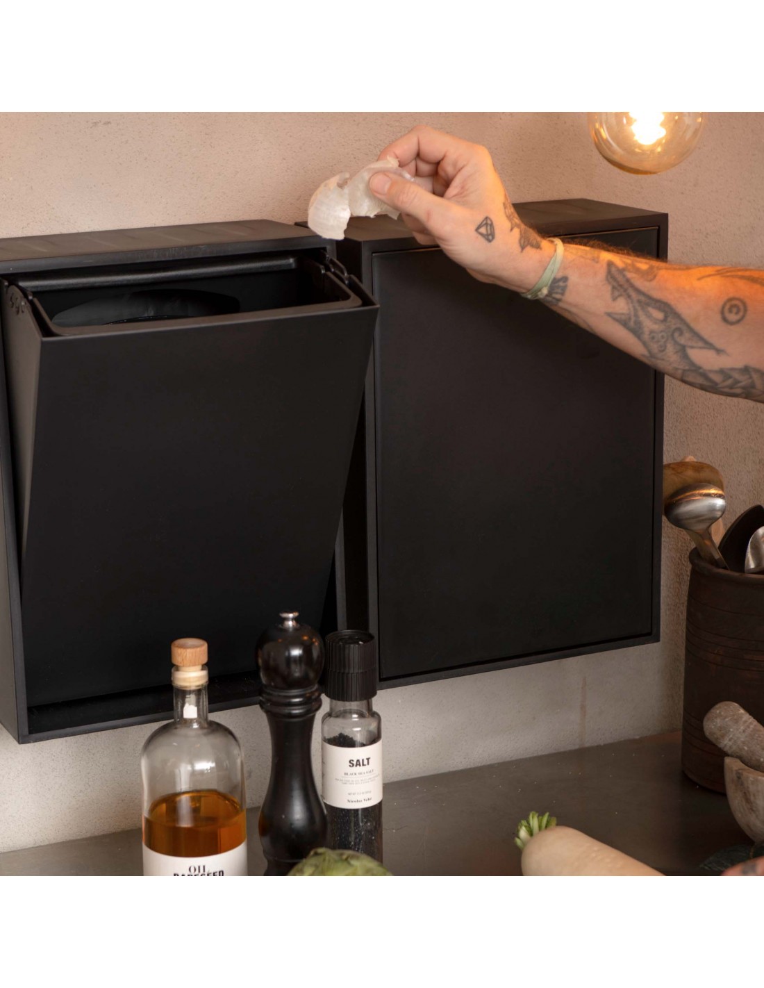 ReCollector affaldsboks i et moderne design, fremstillet af genbrugsplast, der igen kan genanvendes. ReCollector er et innovativt, brugervenligt og dansk designet system til affaldssortering. Affaldsboksen kan ophænges på væggen og kombineres alt efter, hvad der passer til dit hjem og din personlige stil. Da boksene er fremstillet af genbrugsplast, kan mindre variationer og små prikker forekomme i overfladen. Boksene har en åbne- og lukkemekanisme, der er nem at betjene og håndtag, således man kan tage hele skuffen ud. Sorteringsboksen rengøres let med en blød, fugtig klud eller svamp, hvor du eventuelt kan tilsætte et mildt opvaskemiddel eller sæbe og eftertørre med en ren, tør klud.