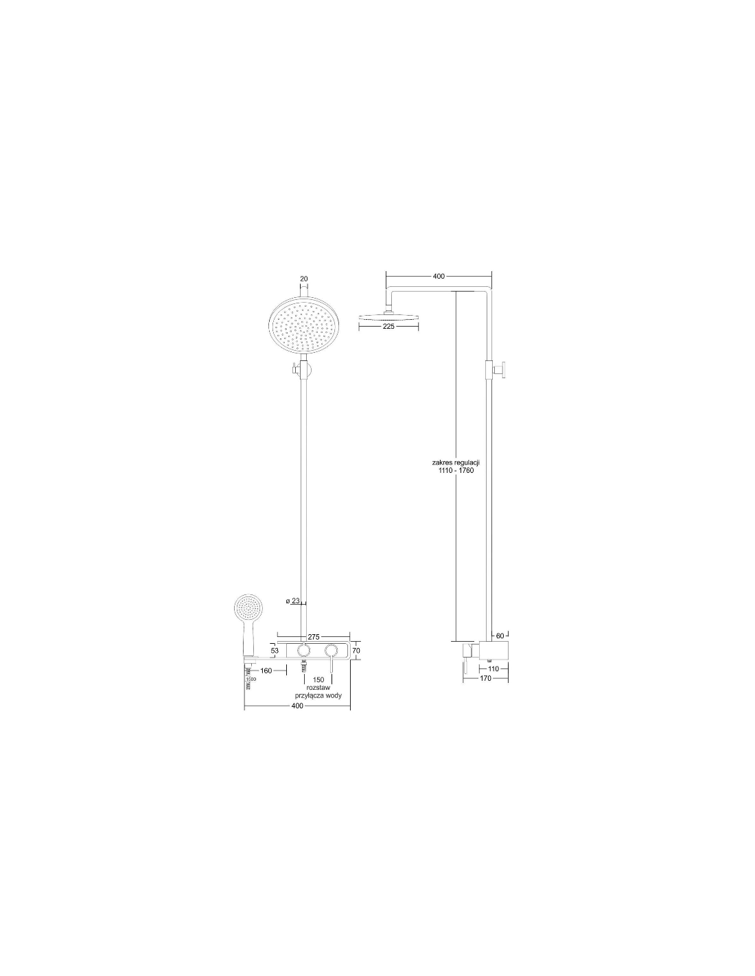 • Længde af bruseslange: 150 cm