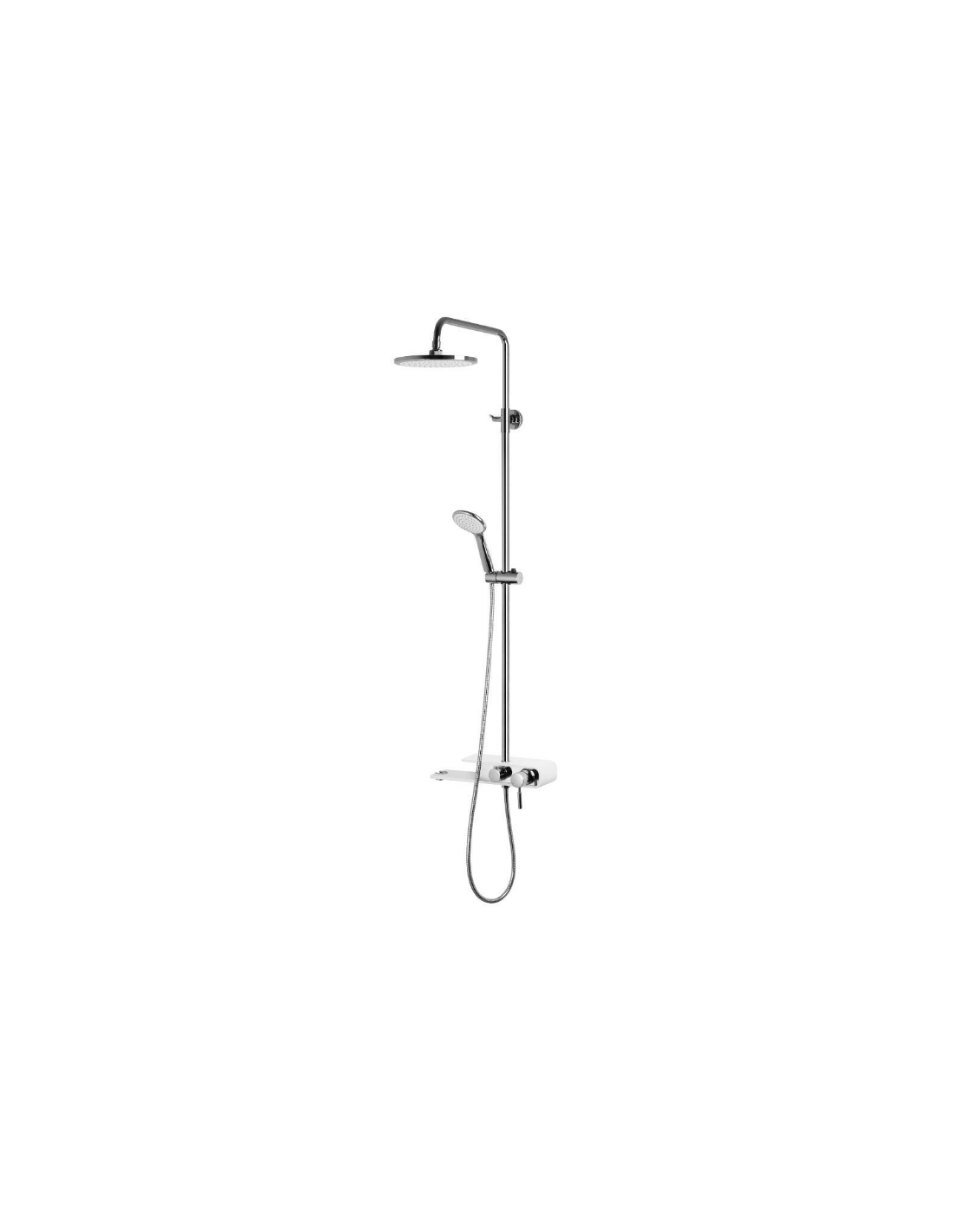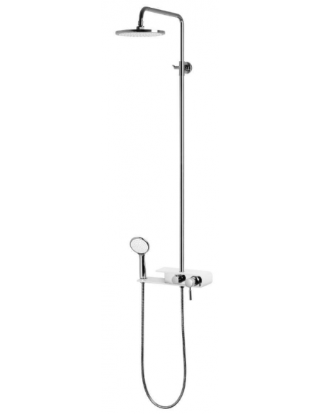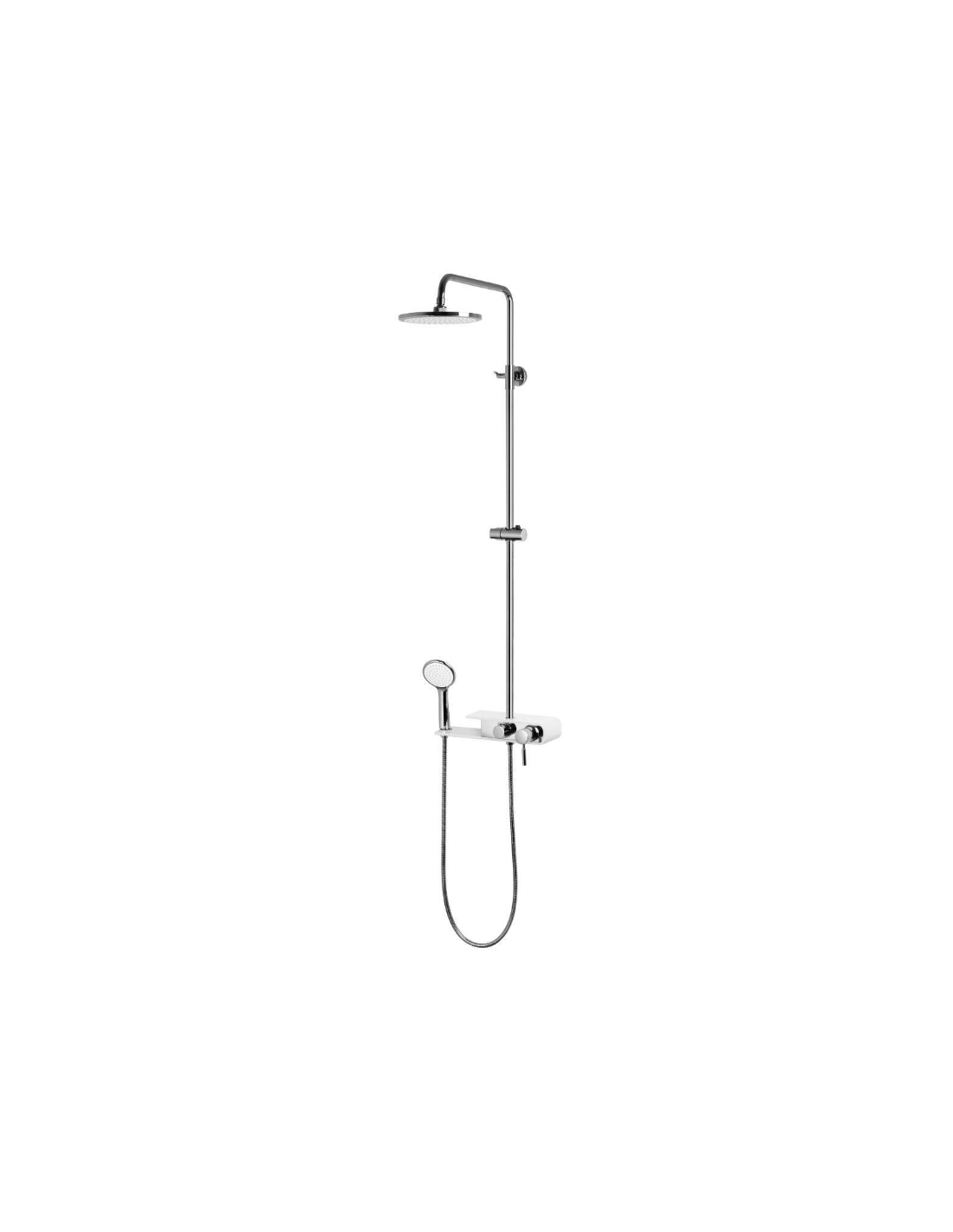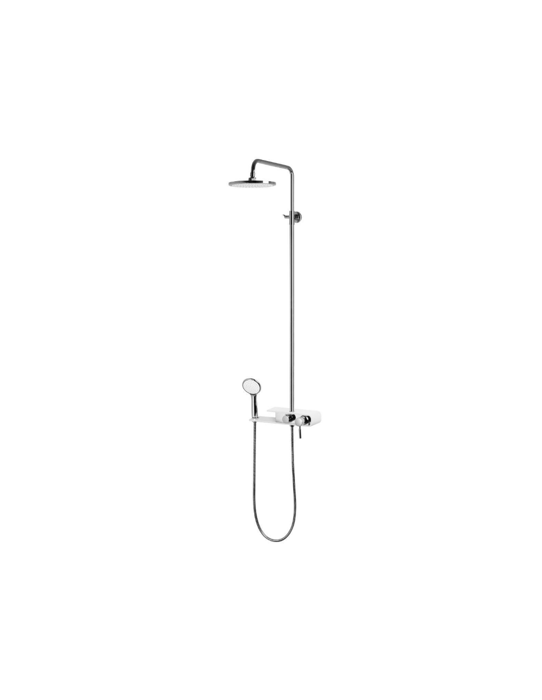 FIBER armatur med mixer til bruser, udført i et moderne og stilrent design i krom og hvid. Armaturet måler 111 - 176 cm i højden og er fremstillet i stål og messing.