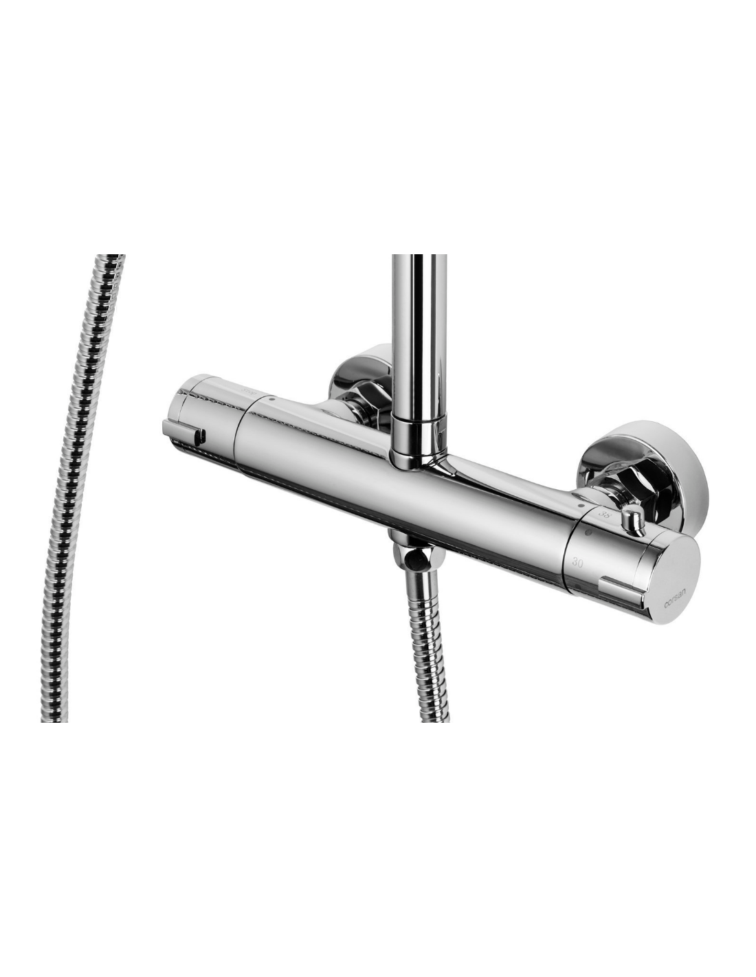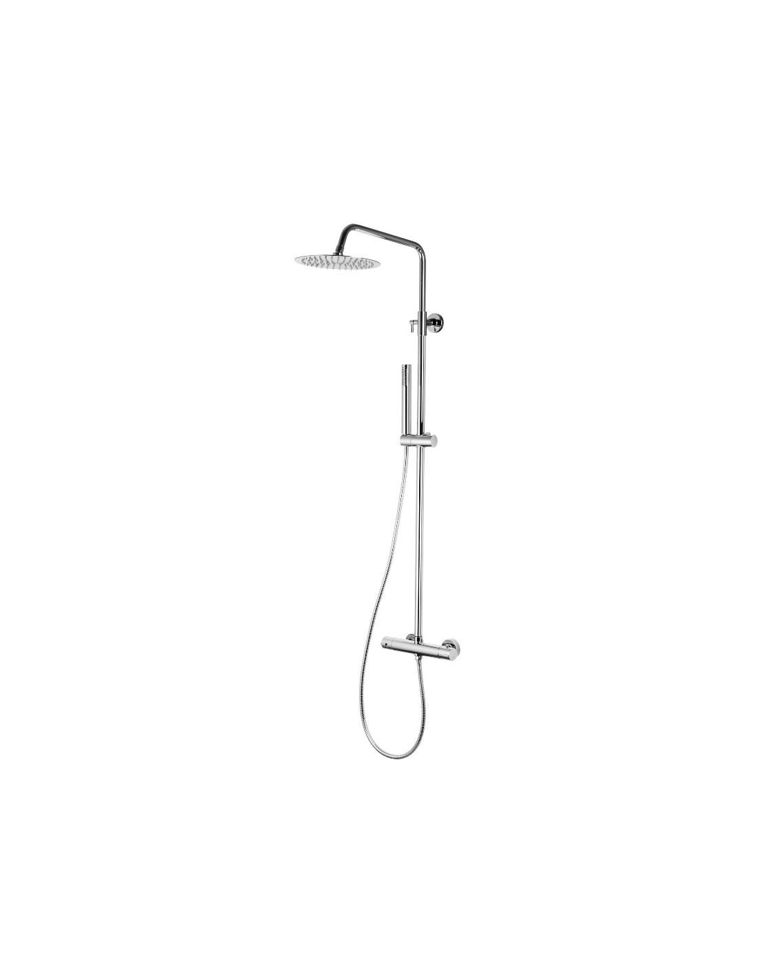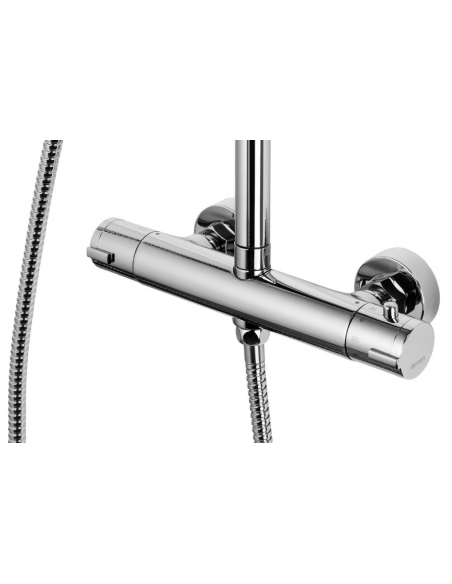 LUGO armatur med termostat til bruser, udført i et moderne og stilrent design i krom. Armaturet måler 108 - 173 cm i højden og er fremstillet i stål og messing.