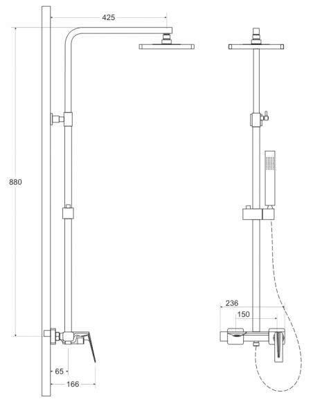 ASPIRA armatur med mixer til bruser, udført i et moderne og stilrent design i kromlakeret messing. Armaturet måler 88 cm i højden.