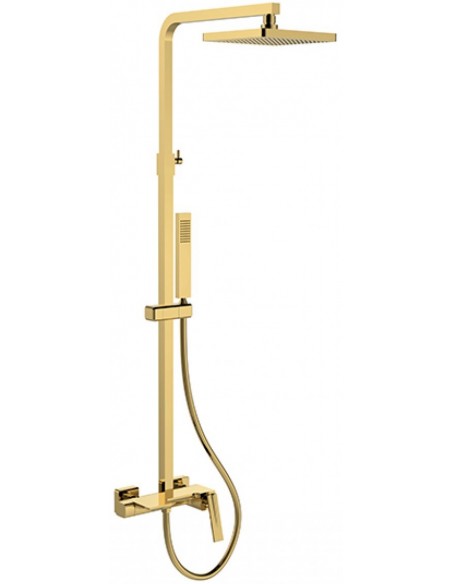 ASPIRA armatur med mixer til bruser, udført i et moderne og stilrent design i blank guldfarvet messing. Armaturet måler 88 cm i højden.