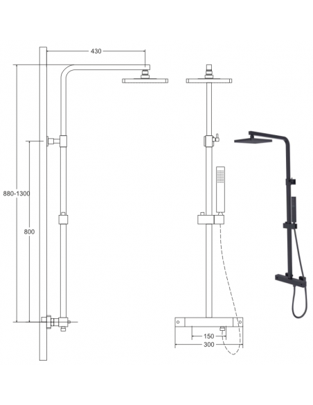 MODERN armatur med termostat til bruser, udført i et moderne og stilrent design i kromlakeret messing. Armaturet måler 88 - 130 cm i højden.