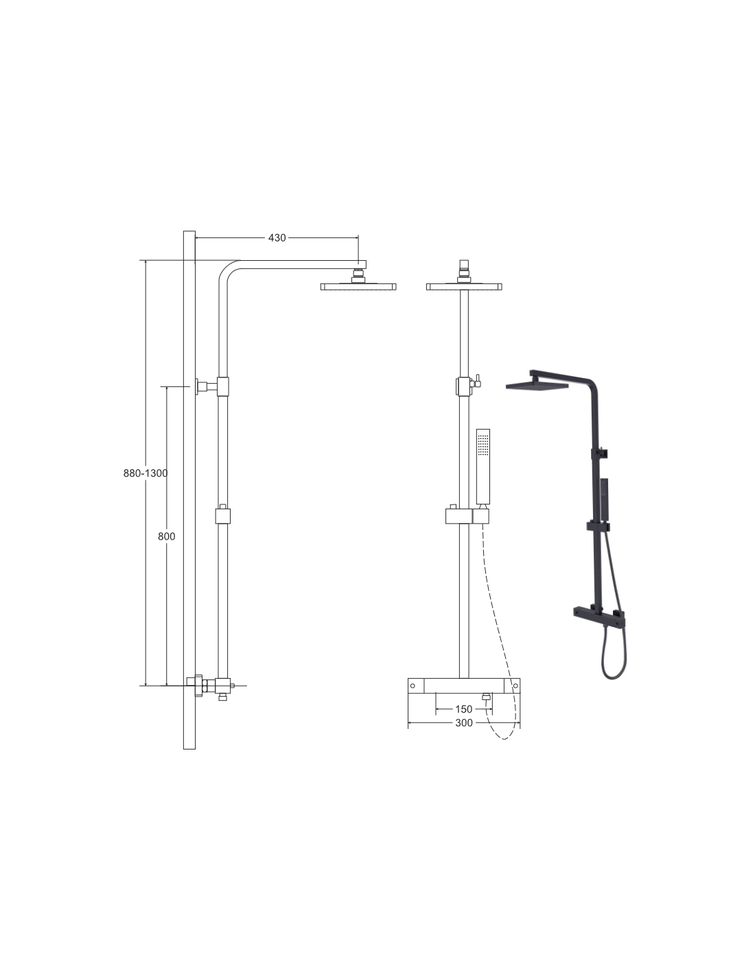 MODERN brusesæt m/termostat H88 - 130 cm - Mat sort