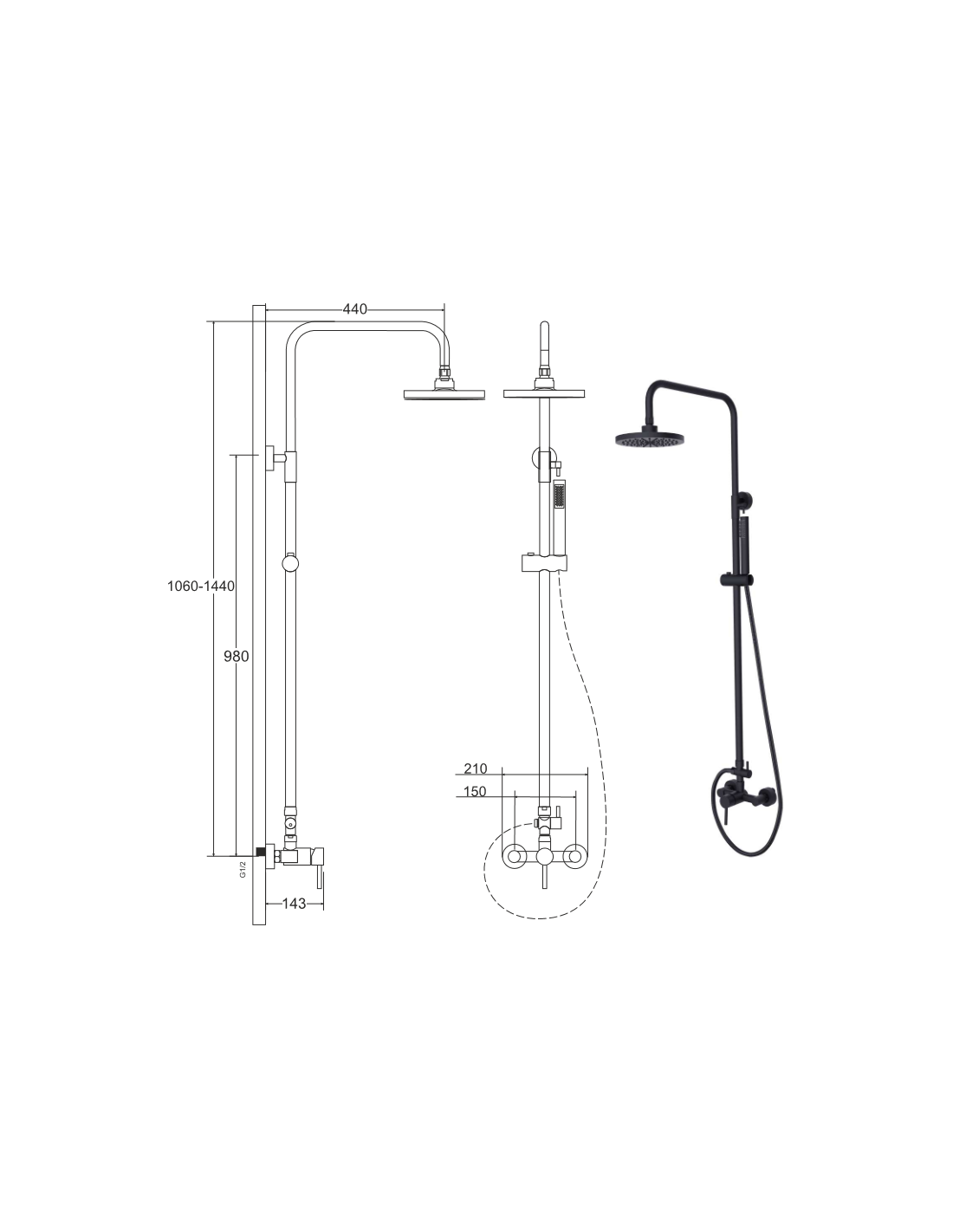 DECCO brusesæt m/mixer H106 - 144 cm - Mat sort