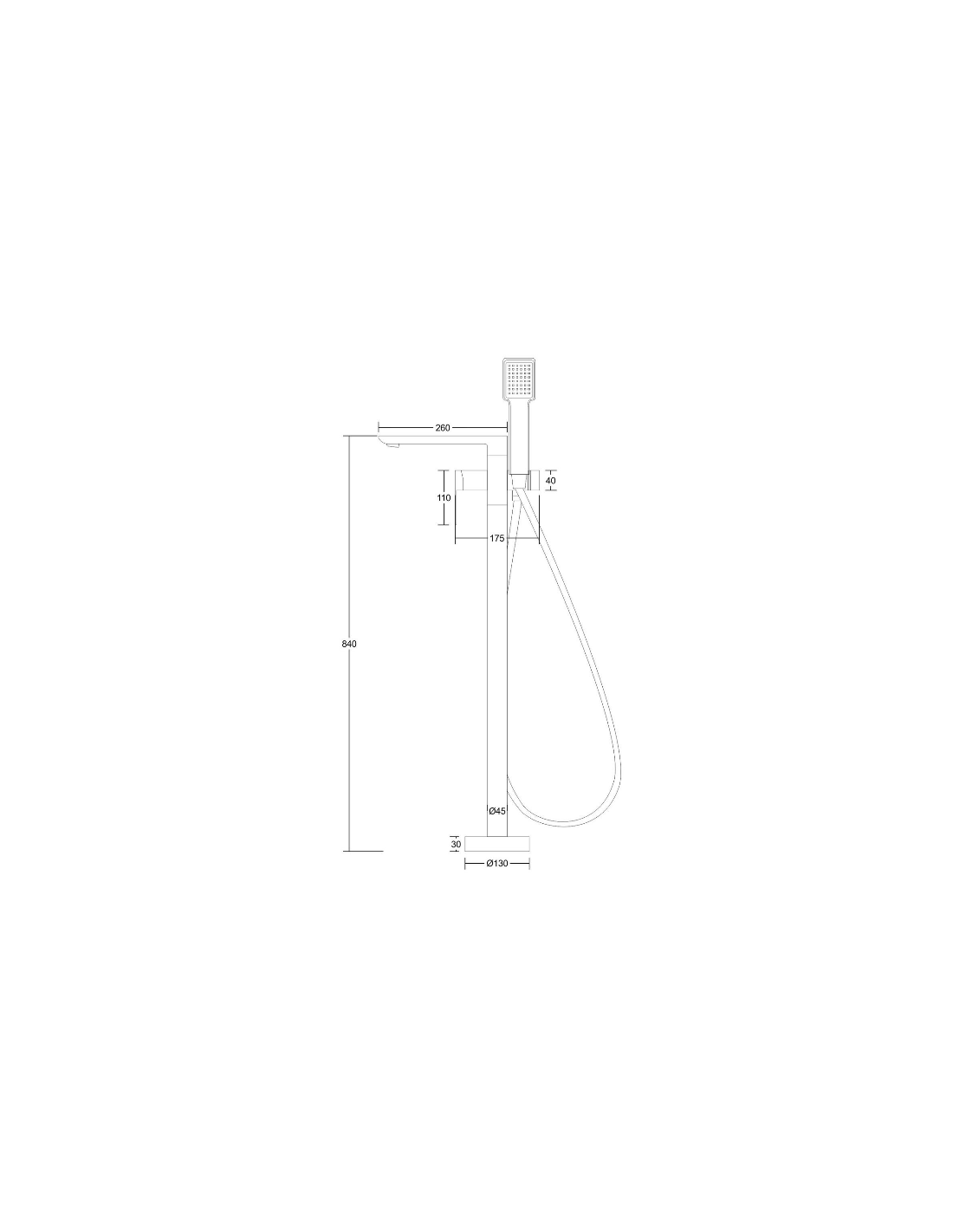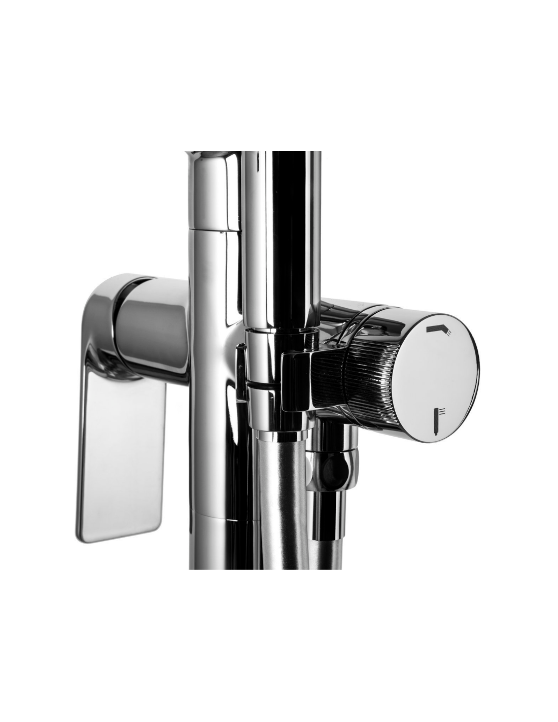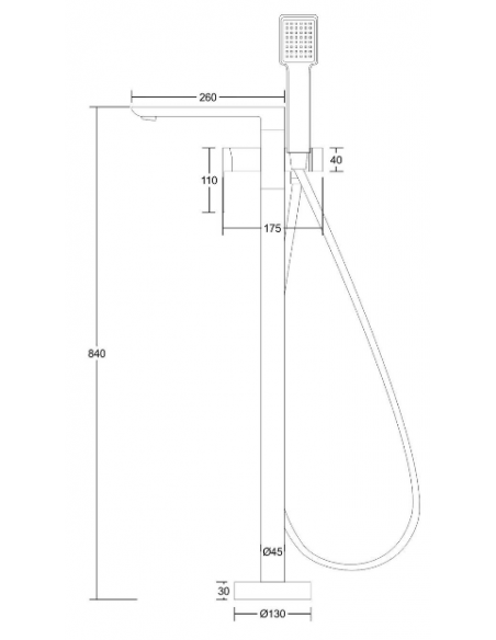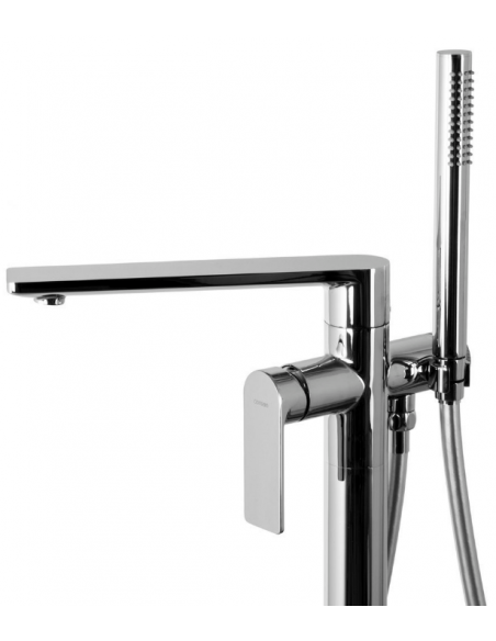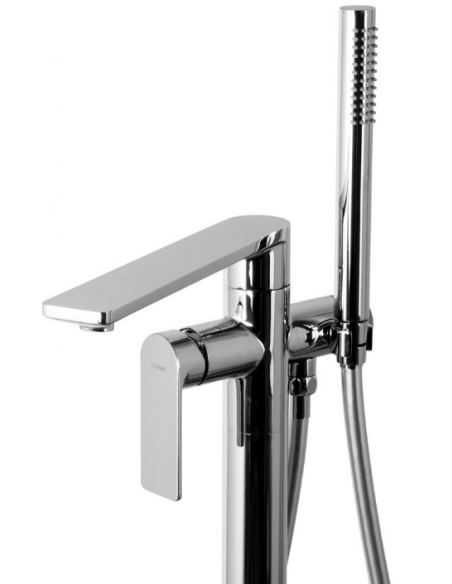 TRINO armatur til badekar, udført i et moderne og stilrent design i krom. Armaturet måler 84 cm i højden og er fremstillet i stål og messing.