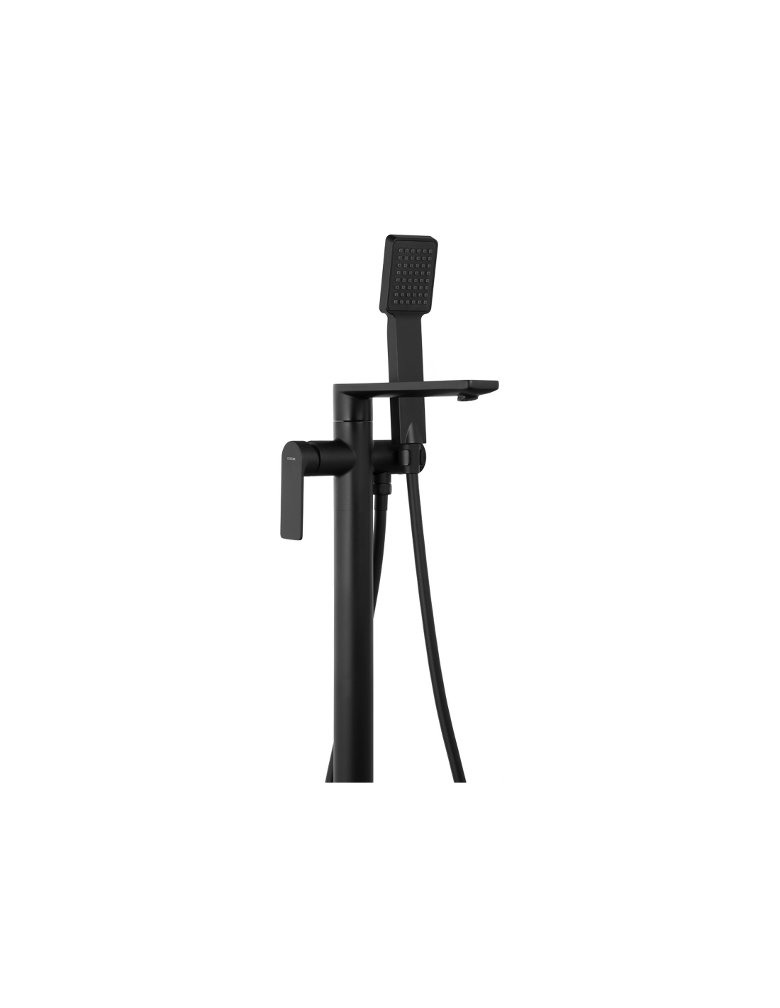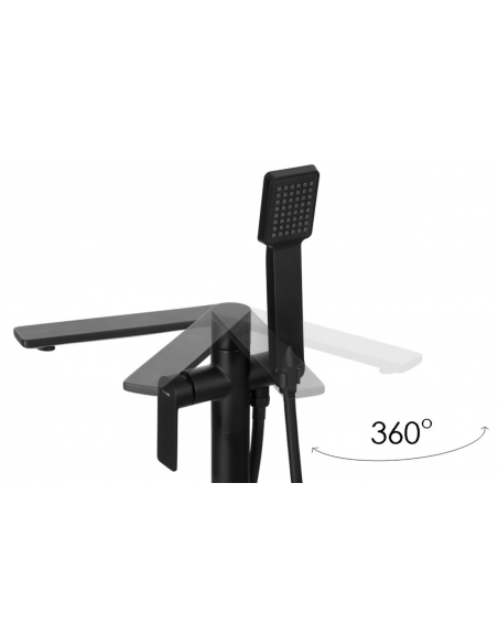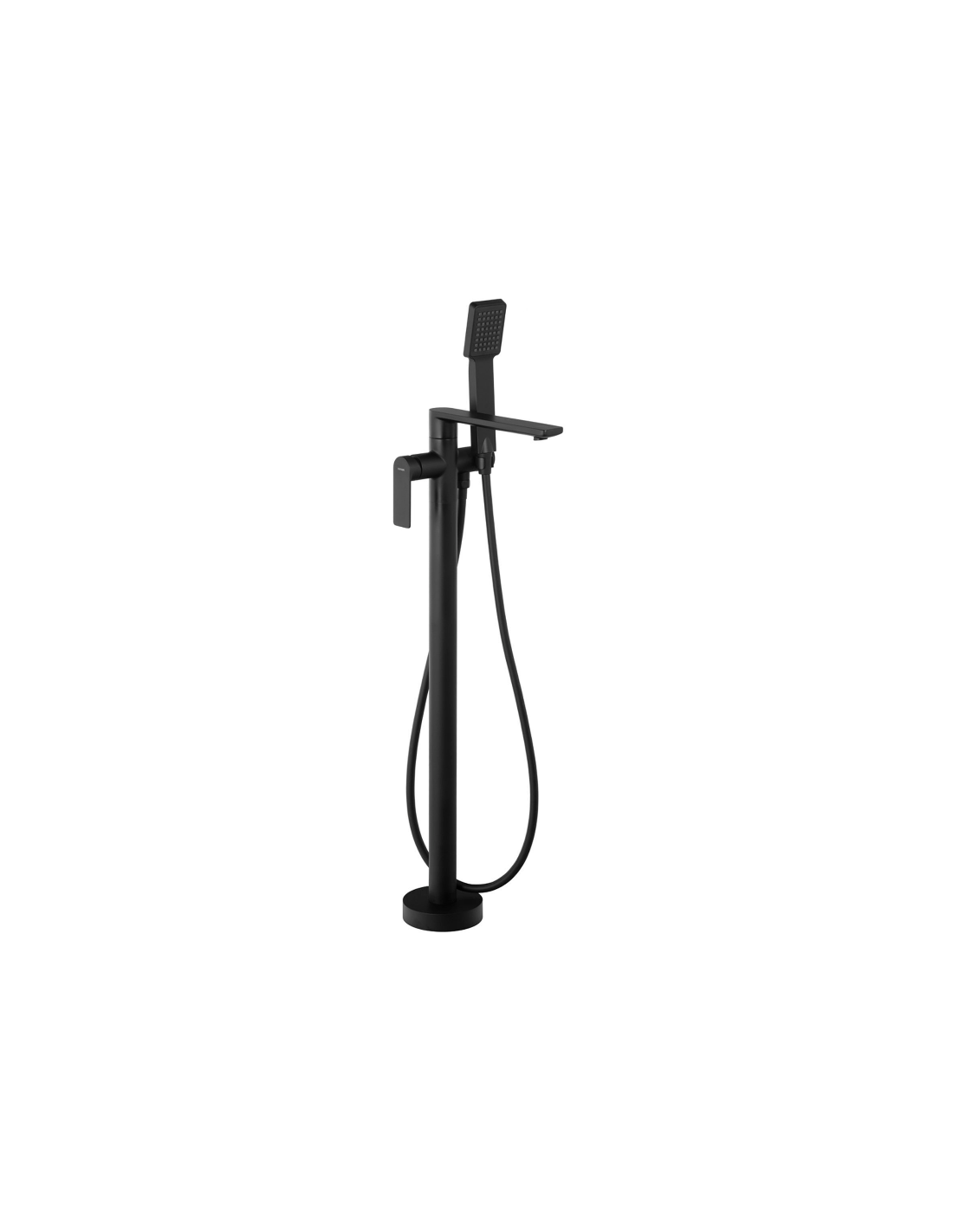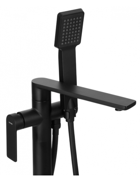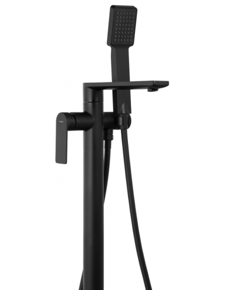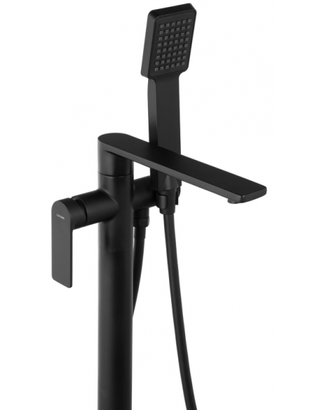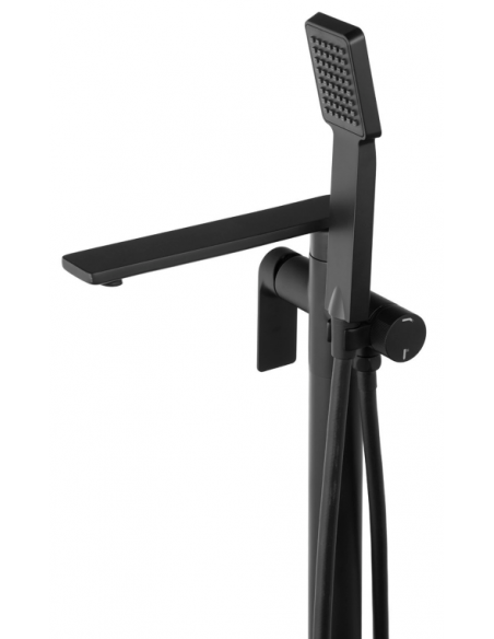 TRINO armatur til badekar, udført i et moderne og stilrent design i mat sort. Armaturet måler 84 cm i højden og er fremstillet i stål og messing.