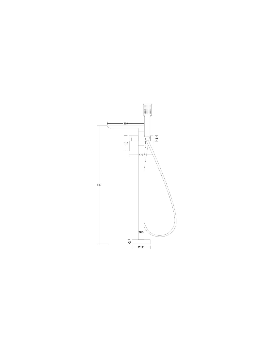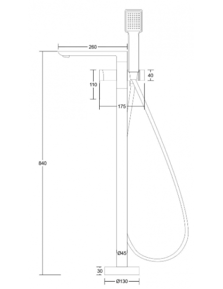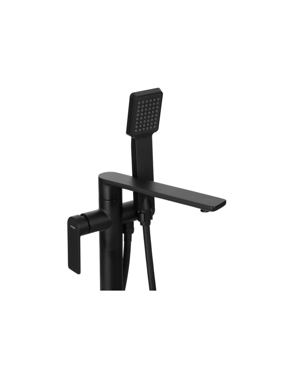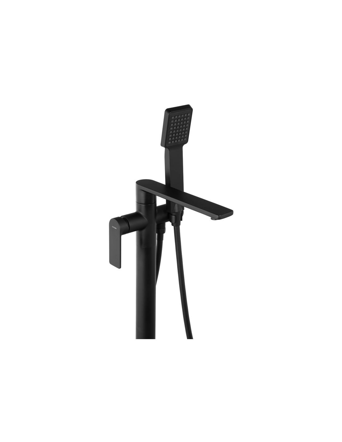 TRINO armatur til badekar, udført i et moderne og stilrent design i mat sort. Armaturet måler 84 cm i højden og er fremstillet i stål og messing.