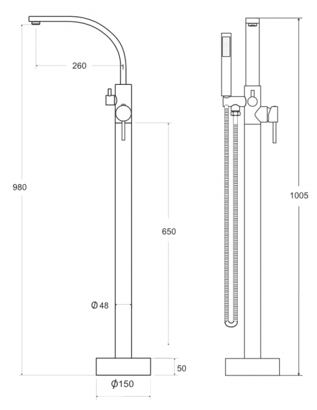 DECCO ll Badekar armatur H100,5 cm - Mat sort