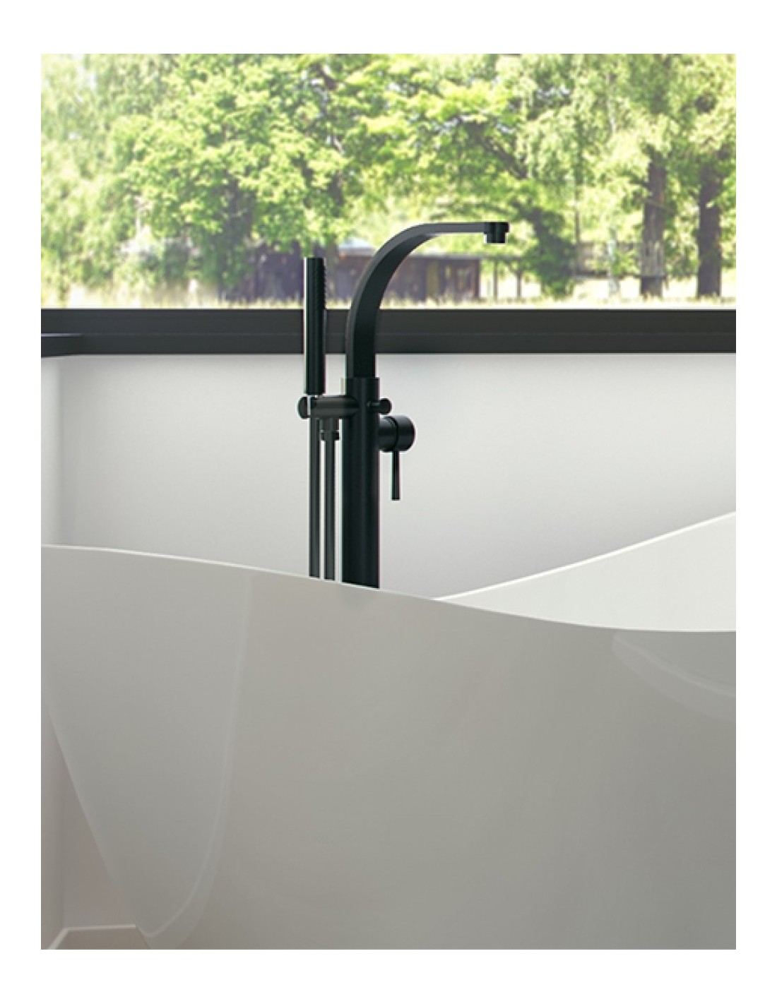DECCO ll armatur til badekar, udført i et moderne og stilrent design i mat sort. Armaturet måler 100,5 cm i højden og er fremstillet i messing.