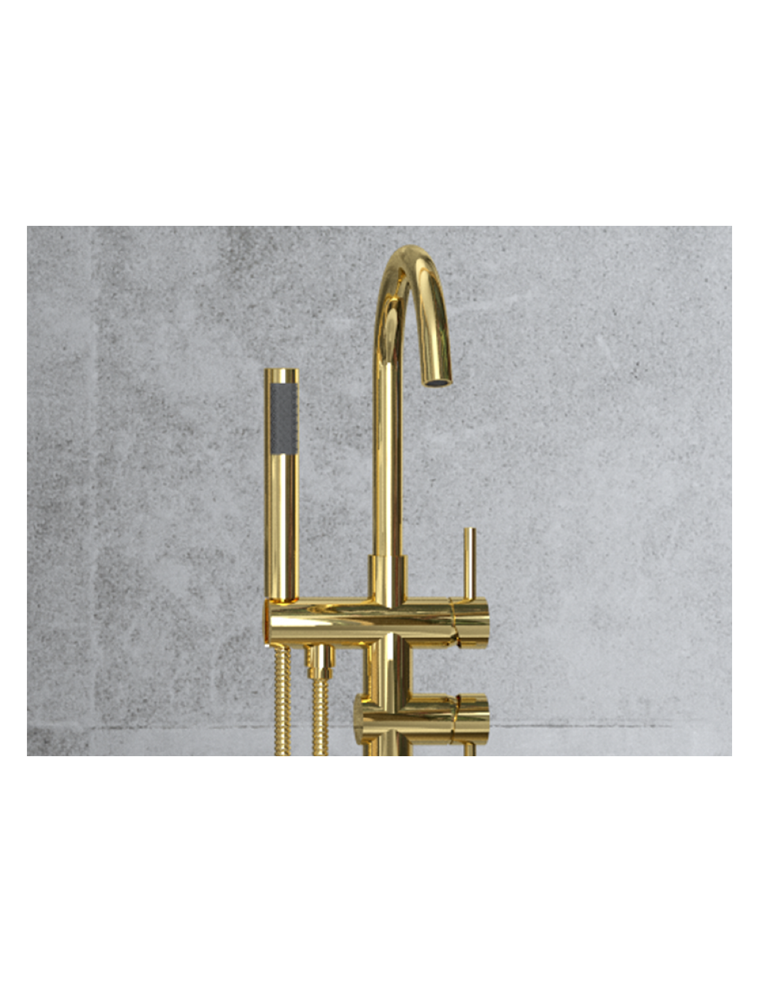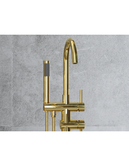 ILLUSION armatur til badekar, udført i et moderne og stilrent design i blank guld. Armaturet måler 118 cm i højden og er fremstillet i messing.