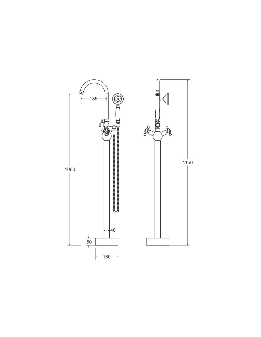 RETRO Badekar armatur H115 cm - Krom/Hvid