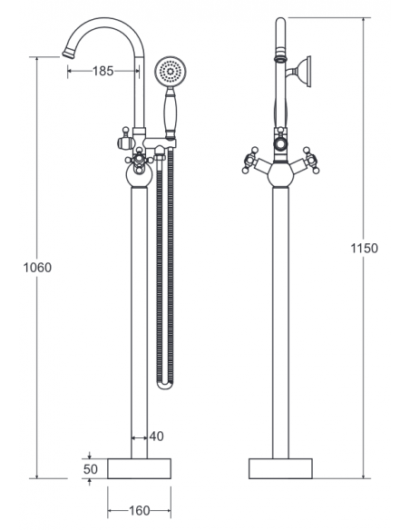 RETRO Badekar armatur H115 cm - Mat sort/Hvid