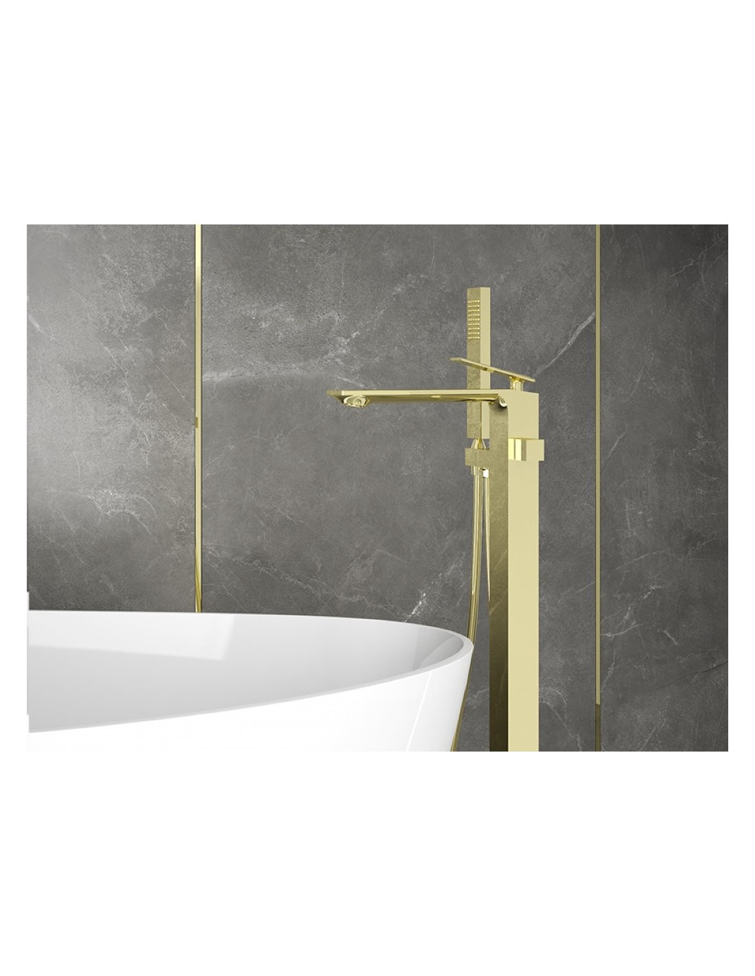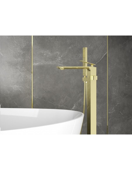 ASPIRA armatur til badekar, udført i et moderne og stilrent design i blank guldfarvet messing. Armaturet måler 91 cm i højden.