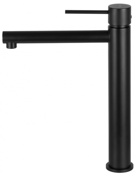 LUGO armatur til håndvaske, udført i et moderne og stilrent design i mat sort. Armaturet måler 30 cm i højden og er fremstillet i stål og messing.