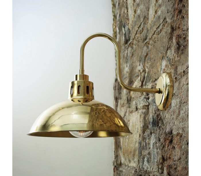 Talise badeværelseslampe i et moderne design, fremstillet i poleret messing. Lampen måler 32,5 cm i højden og 30 x 42 cm i bredde og dybde/fremspring. Lampen anvender 1 x E27 lyskilde.