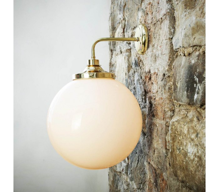 Pelagia badeværelseslampe i et moderne design, fremstillet i poleret messing. Lampen måler 53,5 cm i højden og 35 x 37,5 cm i bredde og dybde/fremspring. Lampen anvender 1 x E27 lyskilde.