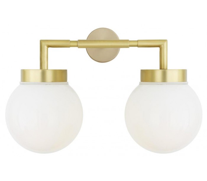 Jordan badeværelseslampe i et design i satineret messing. Lampen måler 42 cm i bredden og anvender 2 x E27 lyskilder.