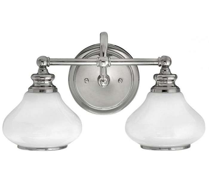 Ainsley badeværelseslampe i et moderne design fra amerikanske Hinkley. Lampen måler 40,6 cm i bredden og 23,1 cm i højden. Lampen leveres til europæisk standard til 2 x G9 LED lyskilder, max. 3,5W (Inkl).