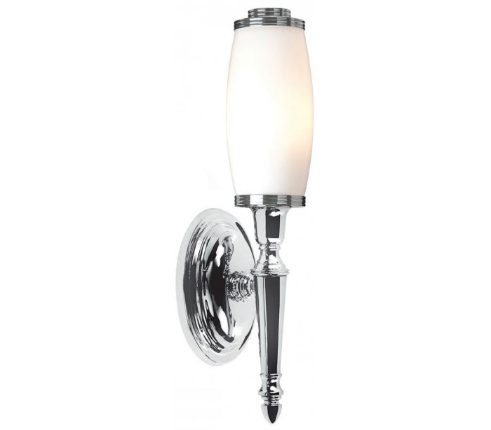 Dryden badeværelseslampe fra britiske Elstead. Lampen måler 40 cm i højden. Lampen leveres til europæisk standard til 1 x G9 LED lyskilde, max. 3,5W (Inkl).