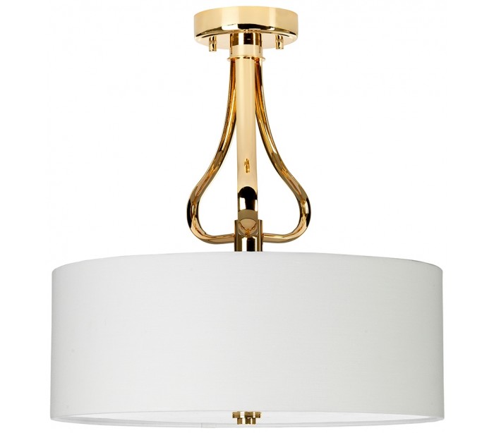 Falmouth Badeværelseslampe i stål og tekstil Ø40 cm 3 x G9 LED - Poleret guld/Hvid