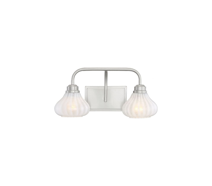 Darlington 2 badeværelseslampe udført i et design af satineret nikkel lakeret stål og med skærme i hvid opalglas. Lampen er fra amerikanske Savoy House og anvender 2 x E27 lyskilder og måler 22 cm i højden og 46 x 20 cm i bredde og dybde/fremspring.