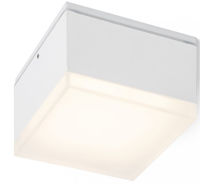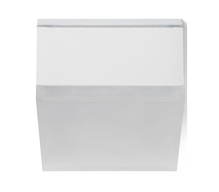Badeværelseslampe spot i et moderne og stilrent design, fremstillet i hvidlakeret aluminium og med skærm i satineret glas. Lampen har indbygget LED lyskilde på 10W og måler 10,8 x 10,8 cm i bredde og dybde.