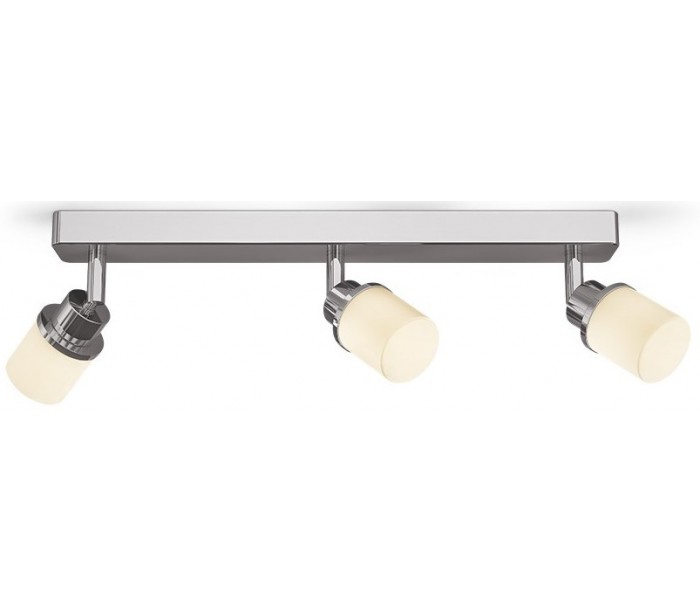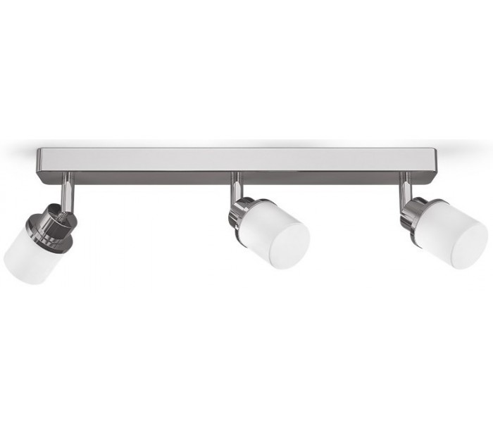 Badeværelseslampe i et moderne og stilrent design, fremstillet i kromlakeret aluminium og hvid opalglas. Lampen er med 3 x G9 fatning på max. 3 x 3W LED lyskilder (Ekskl.). Lampen måler 40 cm i bredde.