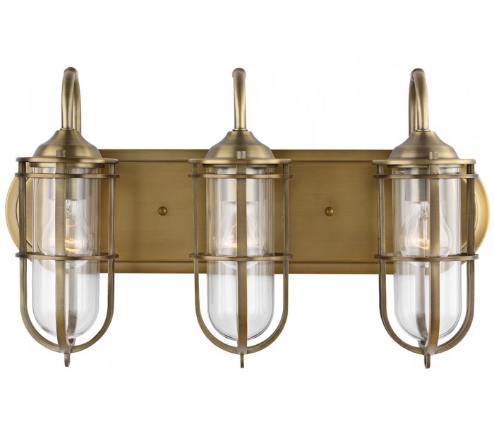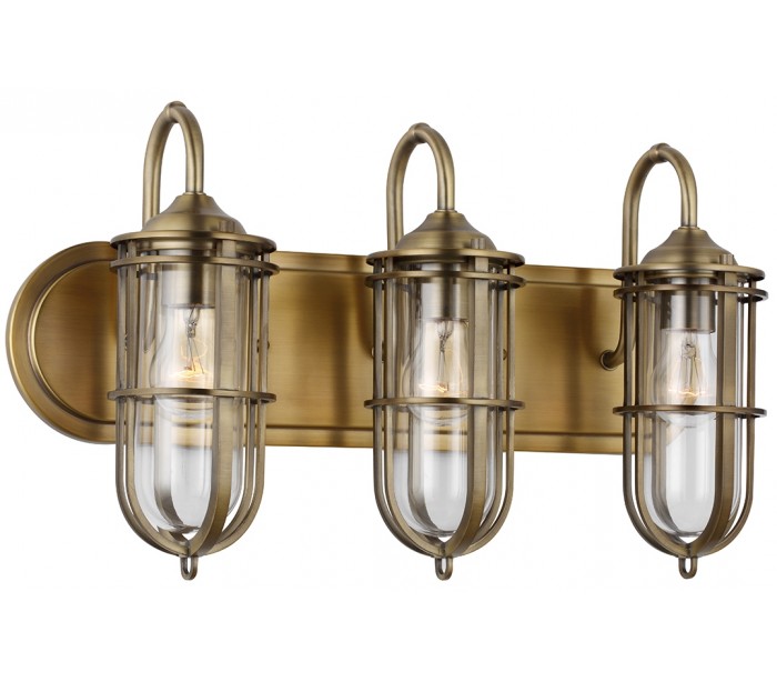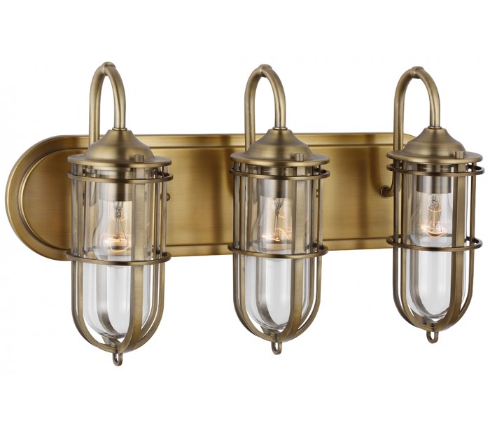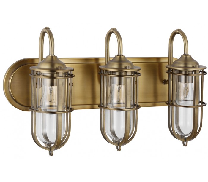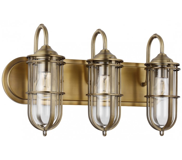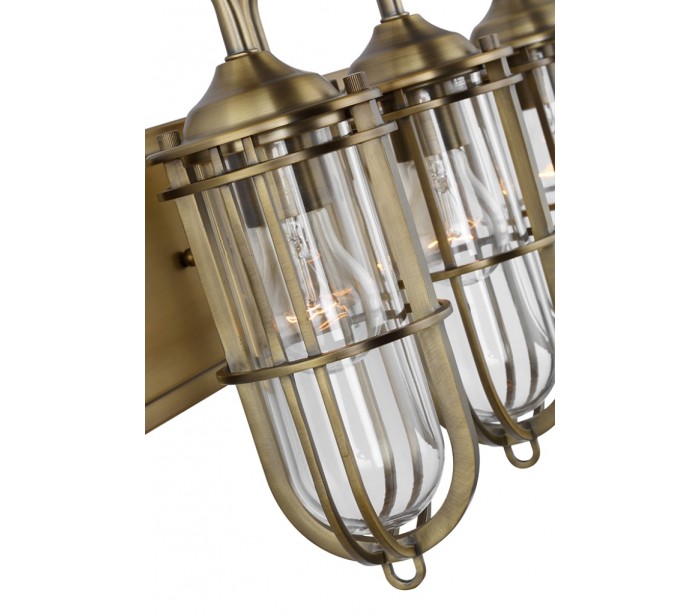 Urban Restoration Badeværelseslampe i stål og glas B54,3 cm 3 x E27 - Antik messing/Klar