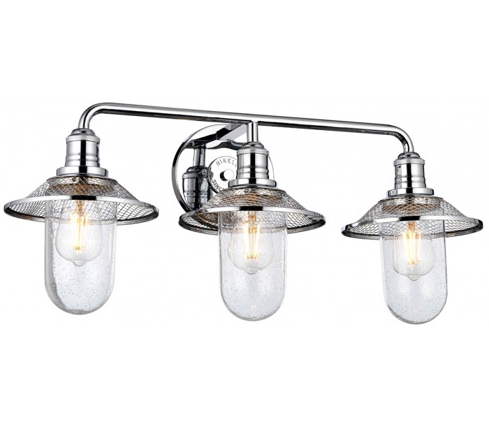 Rigby Badeværelseslampe i stål og glas B68,6 cm 3 x E27 - Poleret krom/Klar med dråbeeffekt