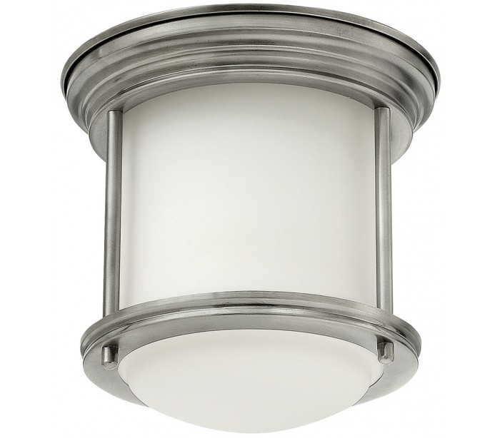 Hadrian Mini Badeværelseslampe i stål og glas Ø19,6 cm 1 x E27 - Antik nikkel/Opalhvid