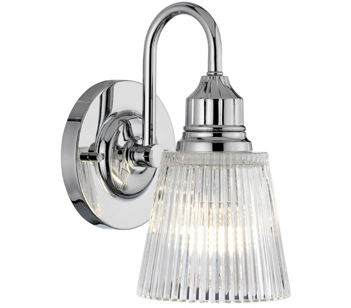 Addison Badeværelseslampe i stål og glas H24,2 cm 1 x G9 LED - Poleret krom/Klar rillet