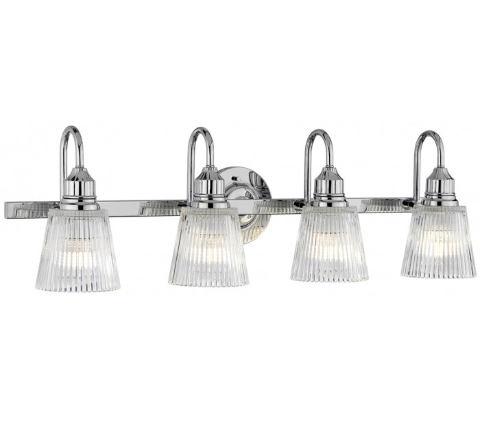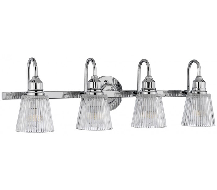 Addison Badeværelseslampe i stål og glas B82,2 cm 4 x G9 LED - Poleret krom/Klar rillet