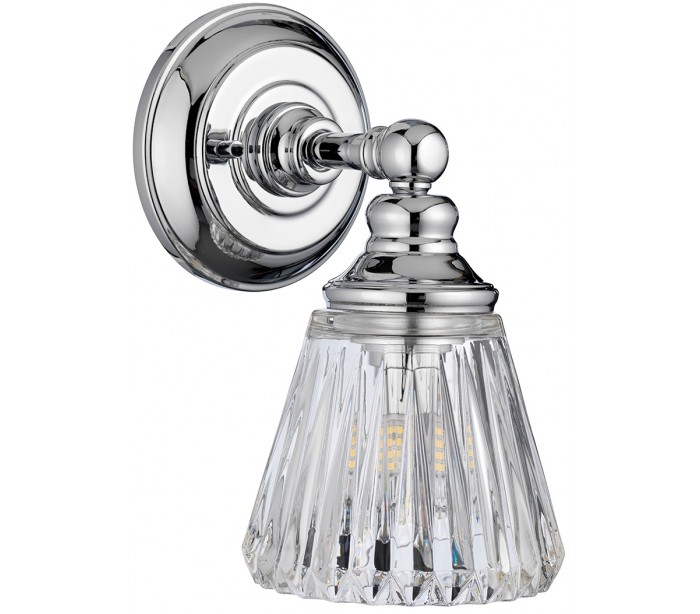 Keynes Badeværelseslampe i stål og glas H25 cm 1 x G9 LED - Poleret krom/Klar rillet