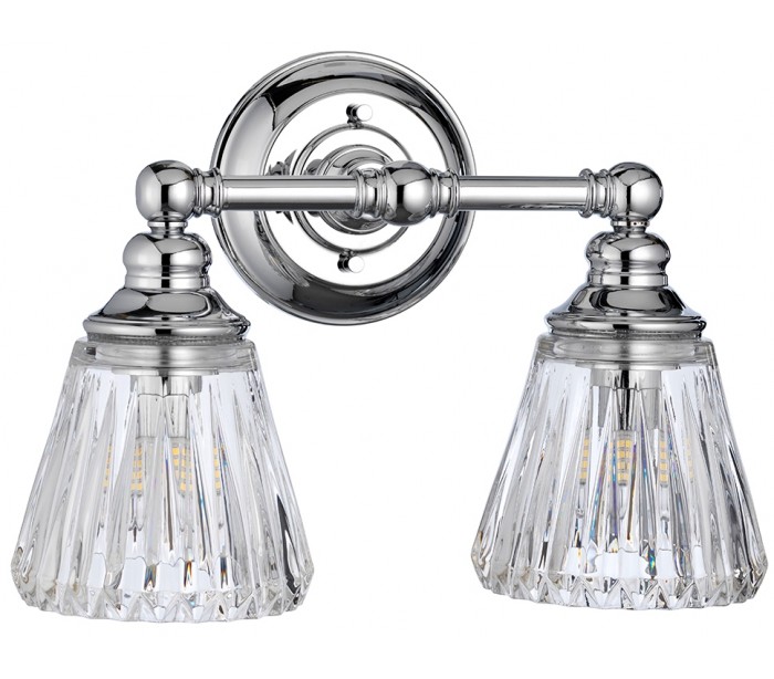 Keynes Badeværelseslampe i stål og glas B35,2 cm 2 x G9 LED - Poleret krom/Klar rillet